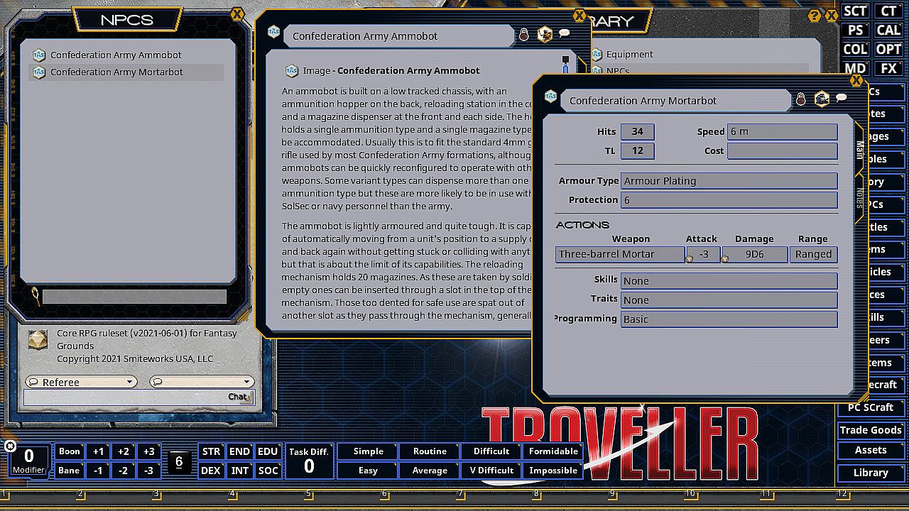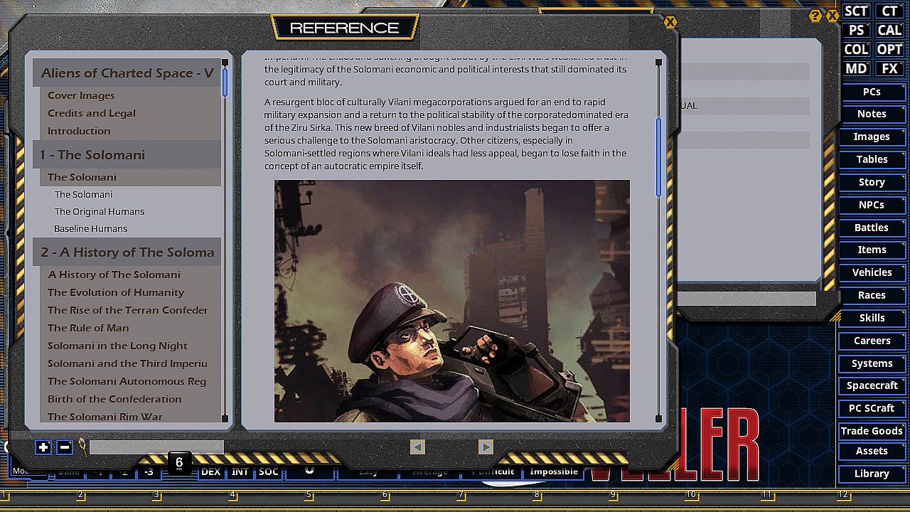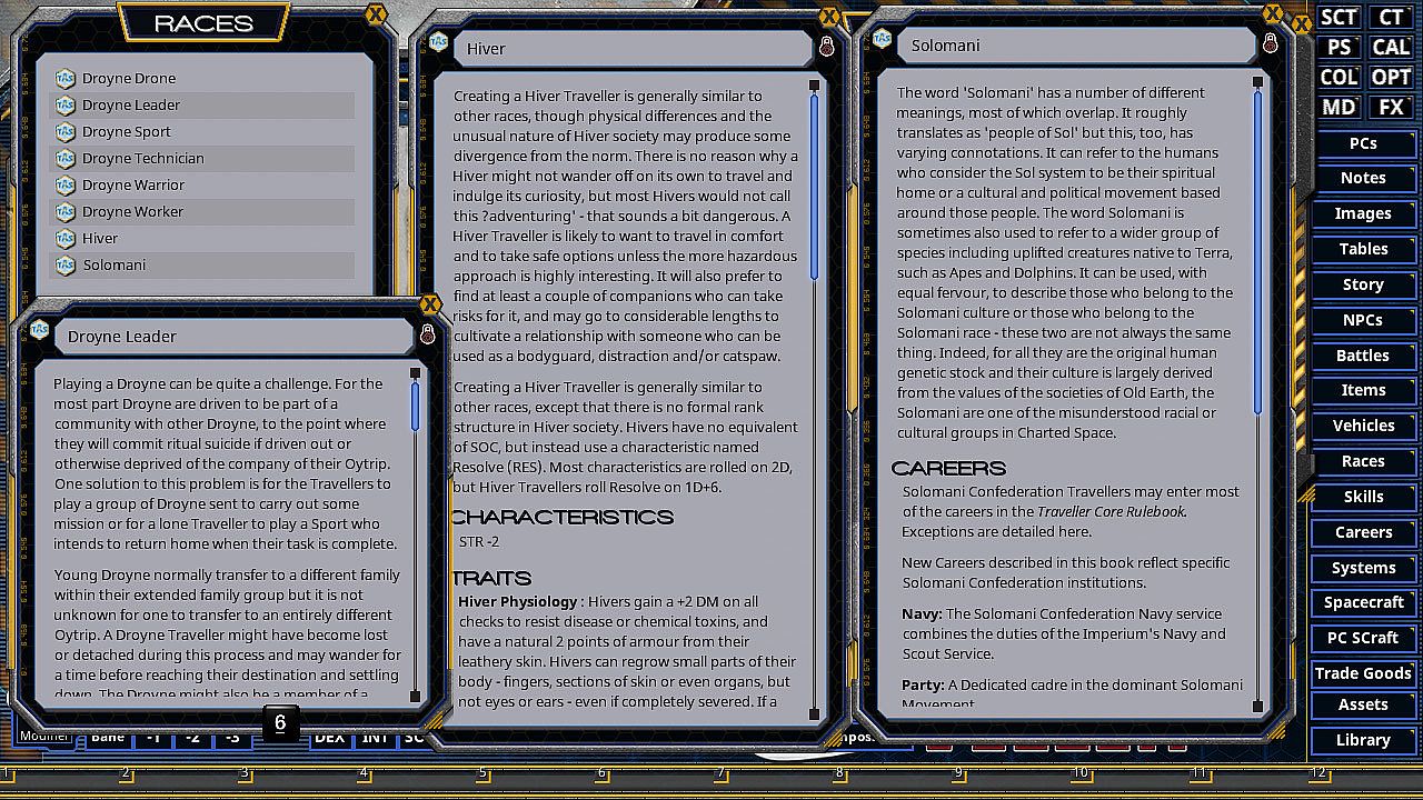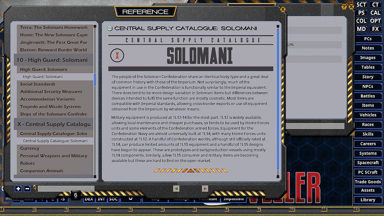 This book contains rules for creating Travellers from each of these alien races, High Guard additions and new ships, and Central Supply Catalogue entries for their new equipment.The Solomani