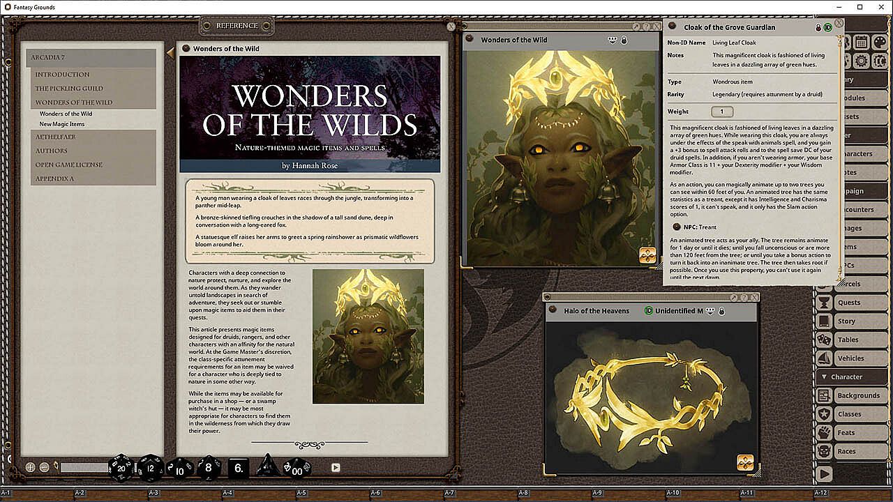 Welcome to ARCADIA! Inspired by old-school tabletop magazines, ARCADIA is MCDM's digital magazine for 5th edition GMs and players. We hope you like it!The Pickling Guild by Sharang Biswas with art from Gustavo Pelissari and Grace Cheung. The Guild of Pickling, Fermentation & Food Preservation is a network of eccentric culinary enthusiasts who enjoy experimenting at the intersection of alchemy and gastronomy... or so the public believes! This article includes the organization's details and secrets, profiles of important NPC members, new food-themed magic items like sepulcheese, and a stat block for the Pickling Guild domain.Wonders of the Wilds by Hannah Rose and art from Kent Davis, Jr. and Nephelomancer. "Wonders of the Wilds" features new nature-themed magic items, like the bag of saplings and staff of the seasons, and new spells for druids and rangers (and also sorcerers, warlocks, and wizards), like ice sheet and sandstorm.Aethelfaer by Sara Thompson with art from Grace Cheung. Aethelfaer is a badass NPC ranger who could become friend or foe to the characters, depending on how they treat his forest. This article provides Aethelfaer's story, statistics, plot hooks, and ready-to-play encounter with a bewitched unicorn!"