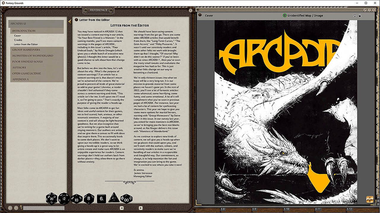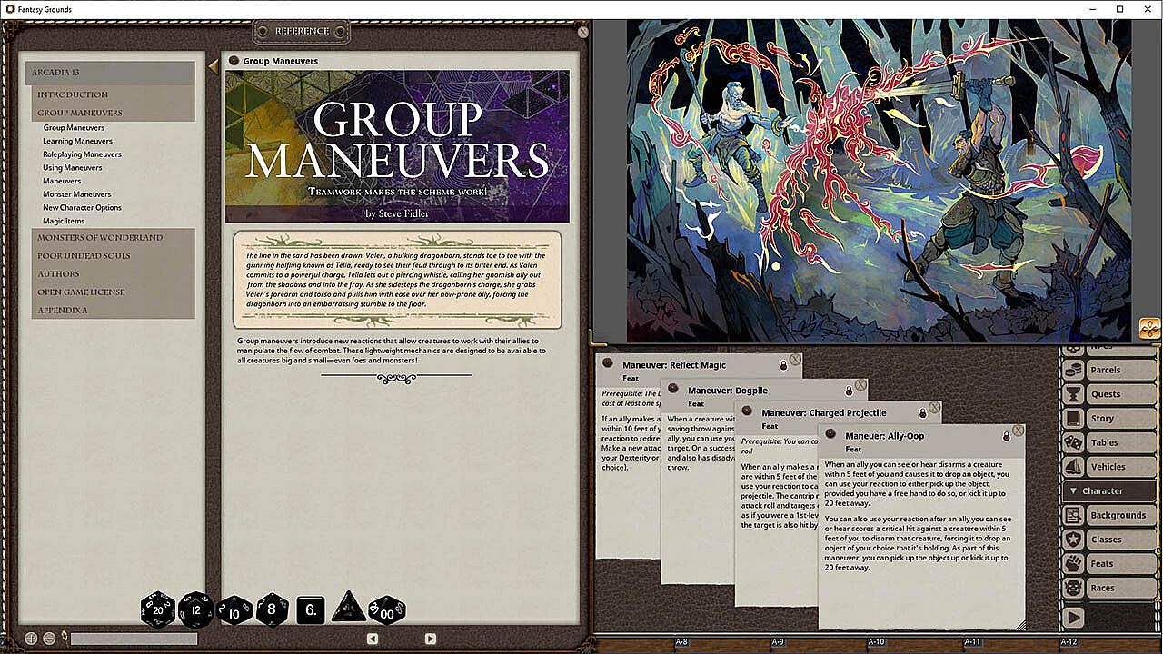 Welcome to ARCADIA! Inspired by old-school tabletop magazines, ARCADIA is MCDM's digital magazine for 5th edition GMs and players. We hope you like it!Group Maneuvers by Steve Fidler with art by Gustavo Pelissari. Has your barbarian ever wanted to toss the fighter into the fray? Have your ranger and rogue asked to fire their arrows at the same to make dodging harder for another target? Want two dragons to overlap their breath weapons at the same time on unsuspecting adventurers? This article provides new teamwork reactions that heroes and their foes can use to make combat more dynamic.