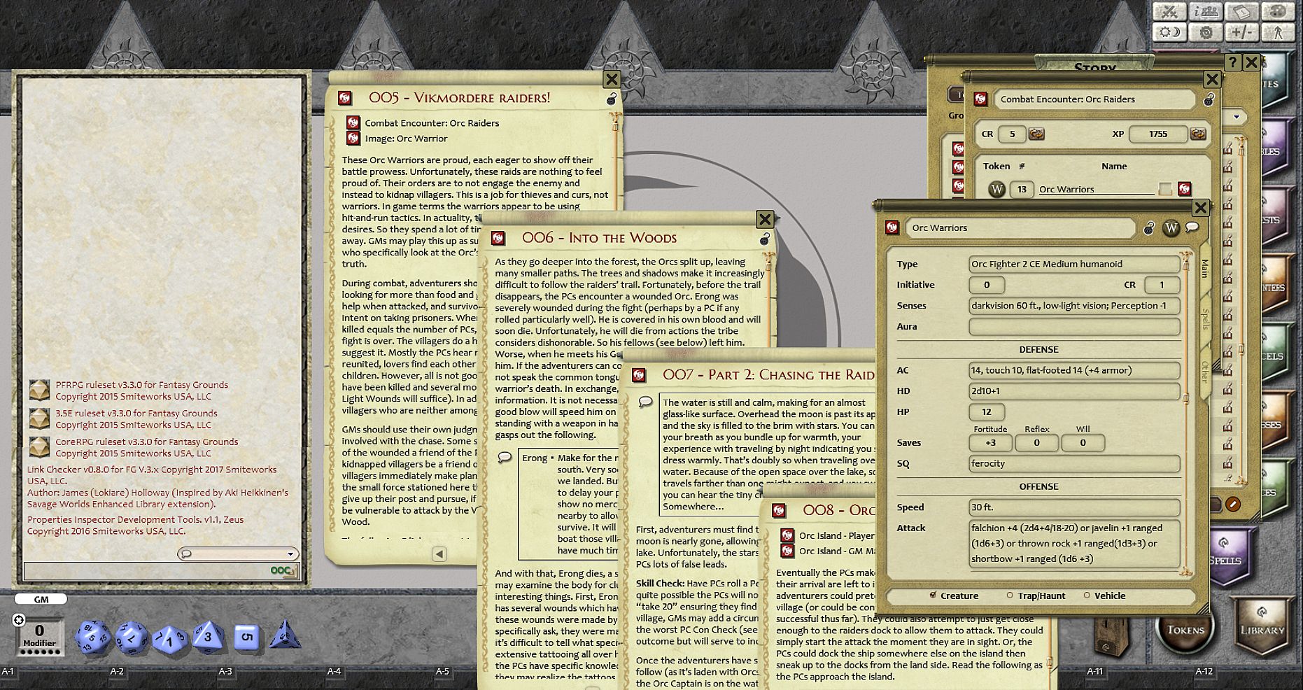 Requires: An active subscription or a Fantasy Grounds Full or Ultimate license and the included Pathfinder (3.5 Compatible) ruleset.