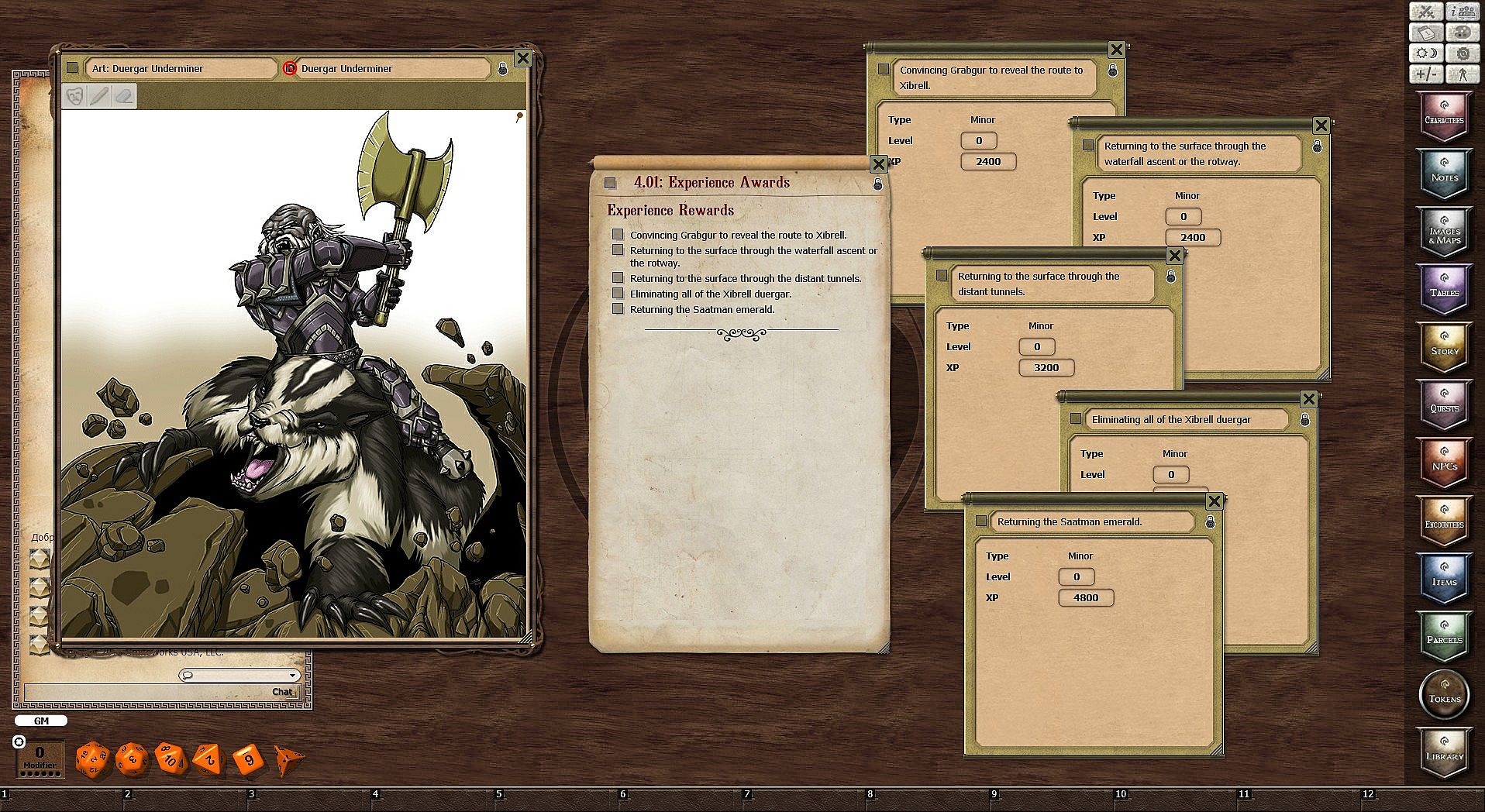 The Saatman emerald is an artifact, a relic of a long lost civilization that has been safely hidden in the Iroth family vault for years. But now, it, along with thousands of other precious gems have been stolen! A secretive group of duergar, long since driven insane from a curse, have broken into the family home and stolen away with the emerald, which must be recovered before it is lost in the miles of tunnels that lead ever deeper into the world.