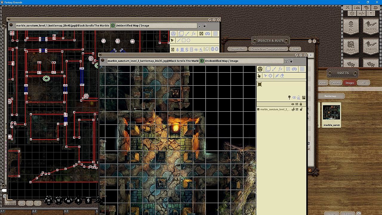 This set contains three levels of the Marble Sanctum, a dungeon depicted in beautiful full-color isometric cartography, for you to use however you deem fit. Enjoy, as always, the high-quality, professional maps you've come to expect from Black Scroll Games.Adapted for Fantasy Grounds by: Antal Keninger