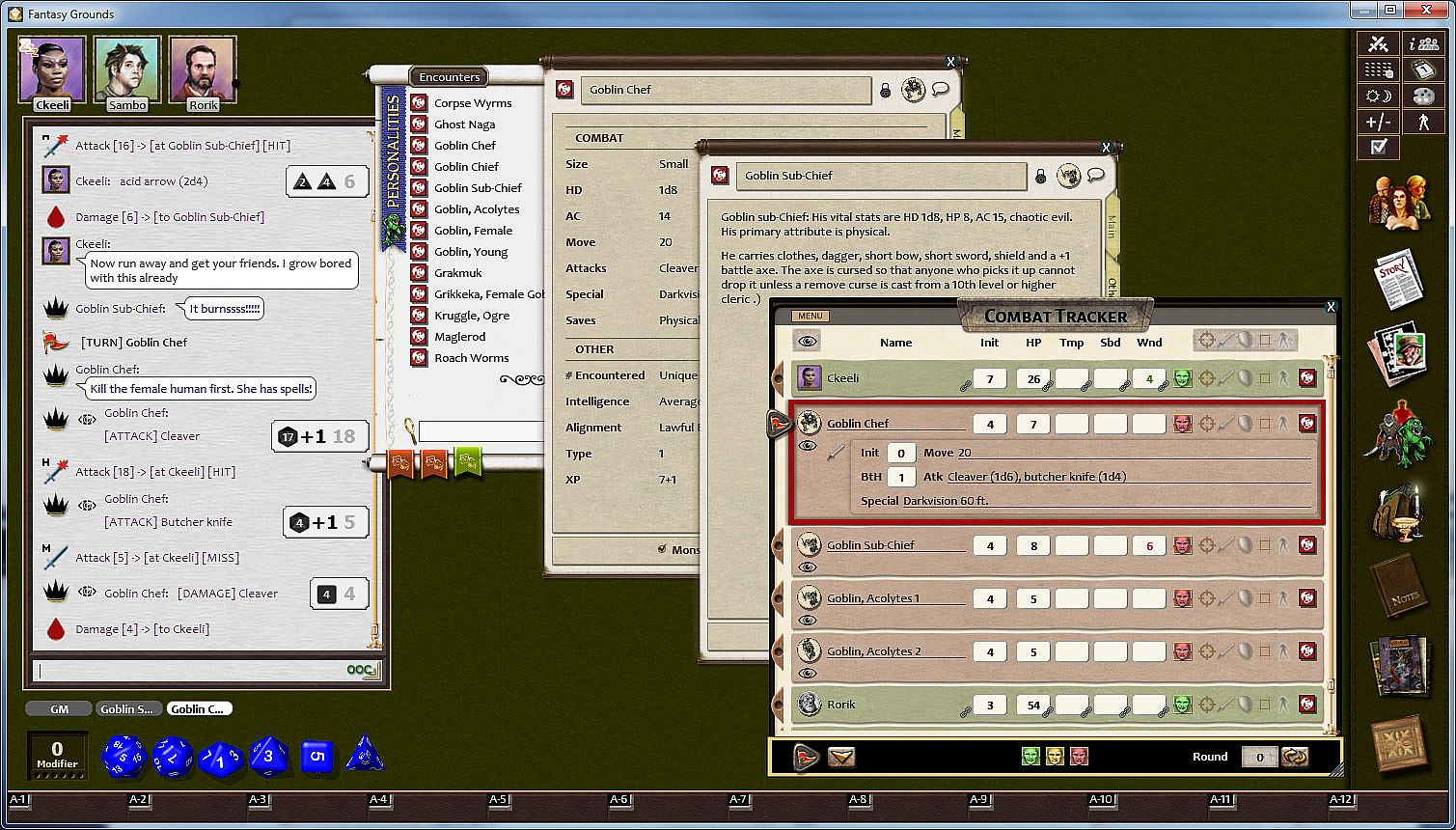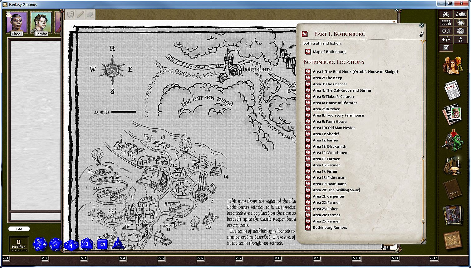 This product was one of the earlier adventures for Fantasy Grounds, so it doesn't take advantage of all the latest features, such as map hotlinks to story entries, auto-rolling random tables and pre-defined encounters. You can easily add these additional elements by dragging portions of the story to your map while holding down CTRL, dragging the NPCs to a new encounter or copying the table entries to a new random table.