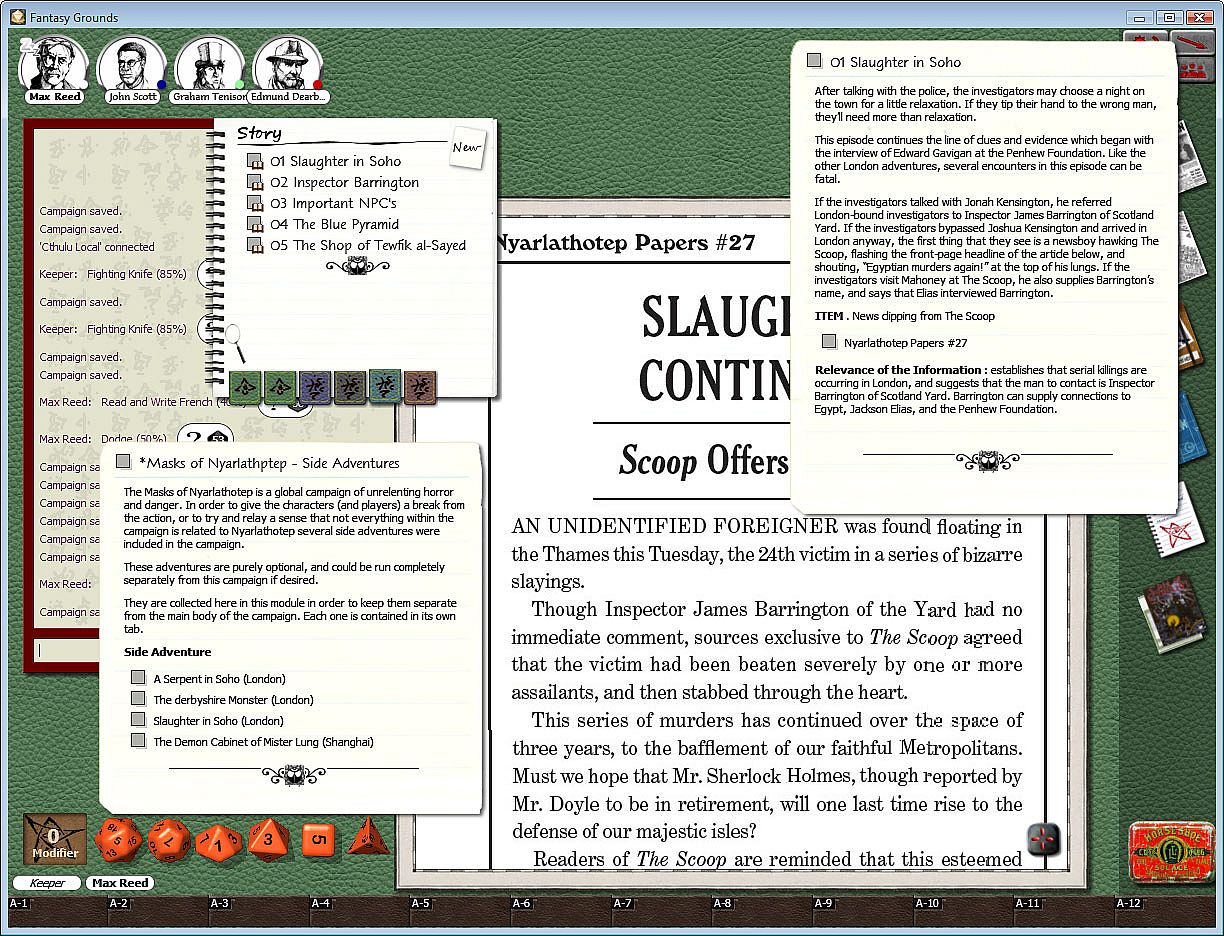 Requirements: Full or Ultimate License of Fantasy Grounds and the Call of Cthulhu ruleset.