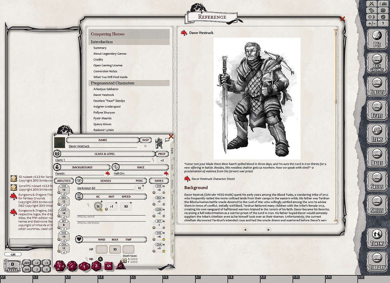 Requirements: An active subscription or a one time purchase of a Fantasy Grounds Full or Ultimate license and the included 5E ruleset.