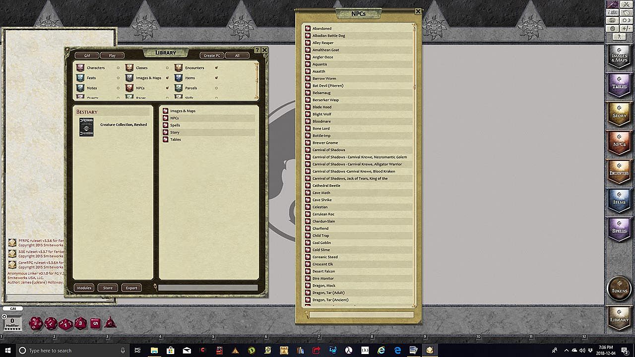 Requires: An active subscription or a one time purchase of a Fantasy Grounds Full or Ultimate license and the included Pathfinder ruleset.