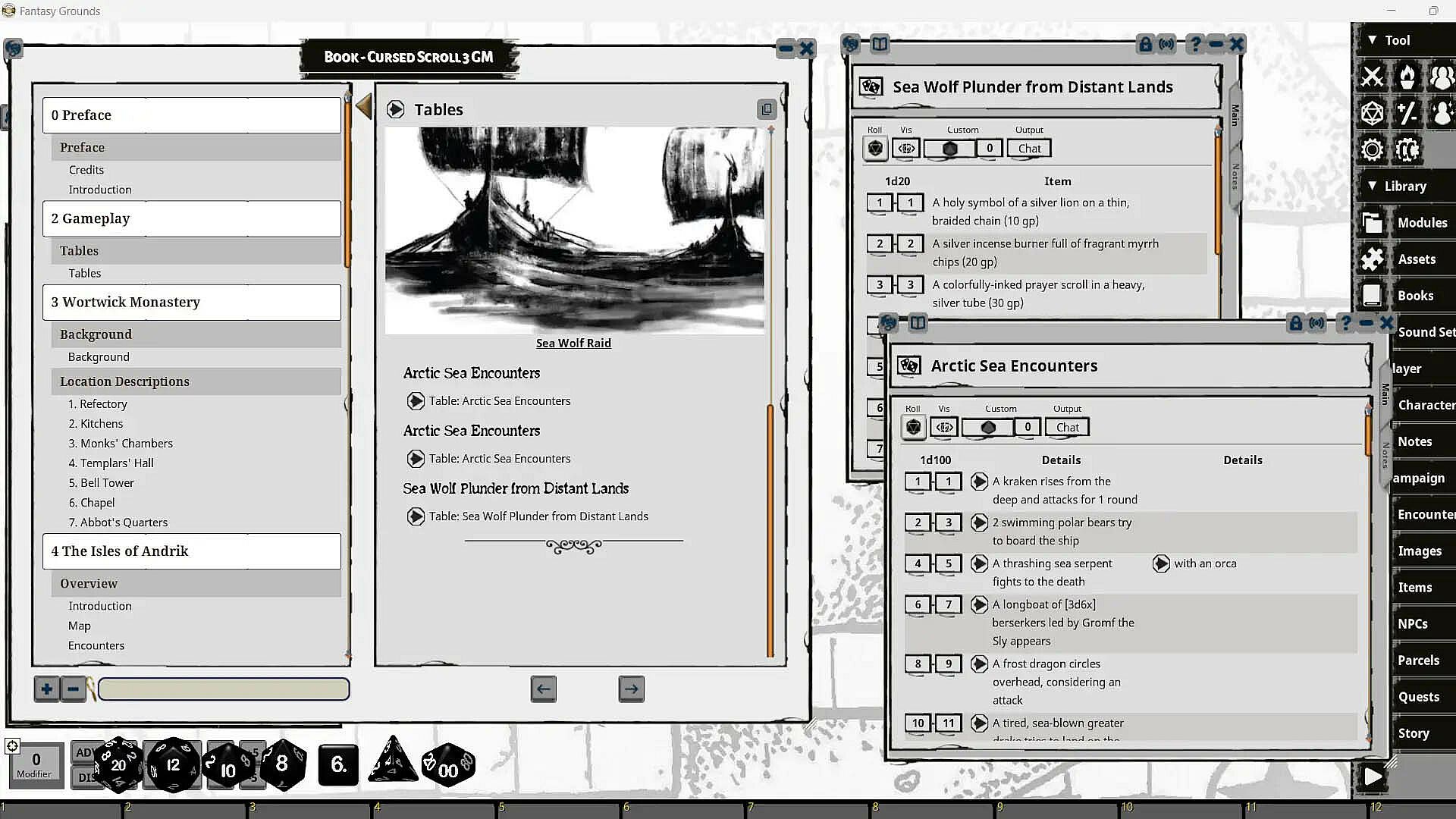 • Rules for new spells, boats, swearing oaths, arctic sea encounters, and a raid into the unsuspecting Wortwick Monastery!