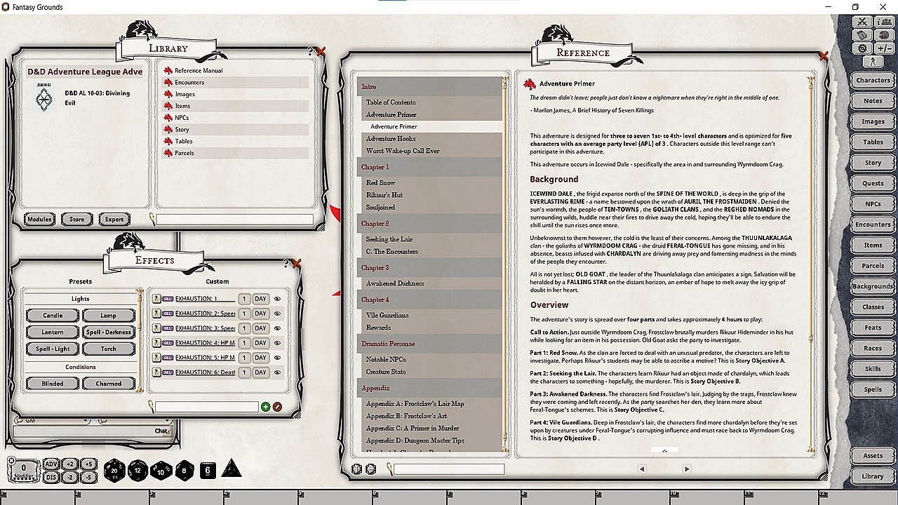 Requires: An active subscription or a one time purchase of a Fantasy Grounds Full or Ultimate license and the included D&D fifth edition ruleset. Compatible with Fantasy Grounds Unity or Fantasy Grounds Classic