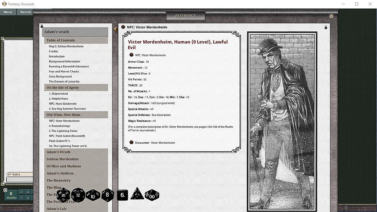 There are some things that mere mortals were never meant to know. . . . In the domain of Lamordia, Doctor Victor Mordenheim created Adam? cobbling the creature together from parts of human corpses. Now, years later, Adam wants revenge. Adam wants Elise, Victor's wife. Adam wants Victor dead. The player characters' ship founders on the coast of the domain of Lamordia. A vicious storm leaves them washed ashore, cold and hungry on the ice-bound Isle of Agony. . . . Then the terror begins. The adventurers embark on a journey of fear that leads from certain doom on the frozen island to a strange new life a Schloss Mordenheim. To return home they must challenge Adam himself and discover a portal? a gate that might lead homeward. Adam's Wrath is intended for a party of four to eight characters of 5th to 7th level. Carefully designed to allow a Dungeon Master to launch from any campaign world or Ravenloft domain, Adam's Wrath is an adventure your characters will never forget? if they survive! WARNING: It has been reported that some of the maps in this scan file are missing... Purchase at your own risk.
