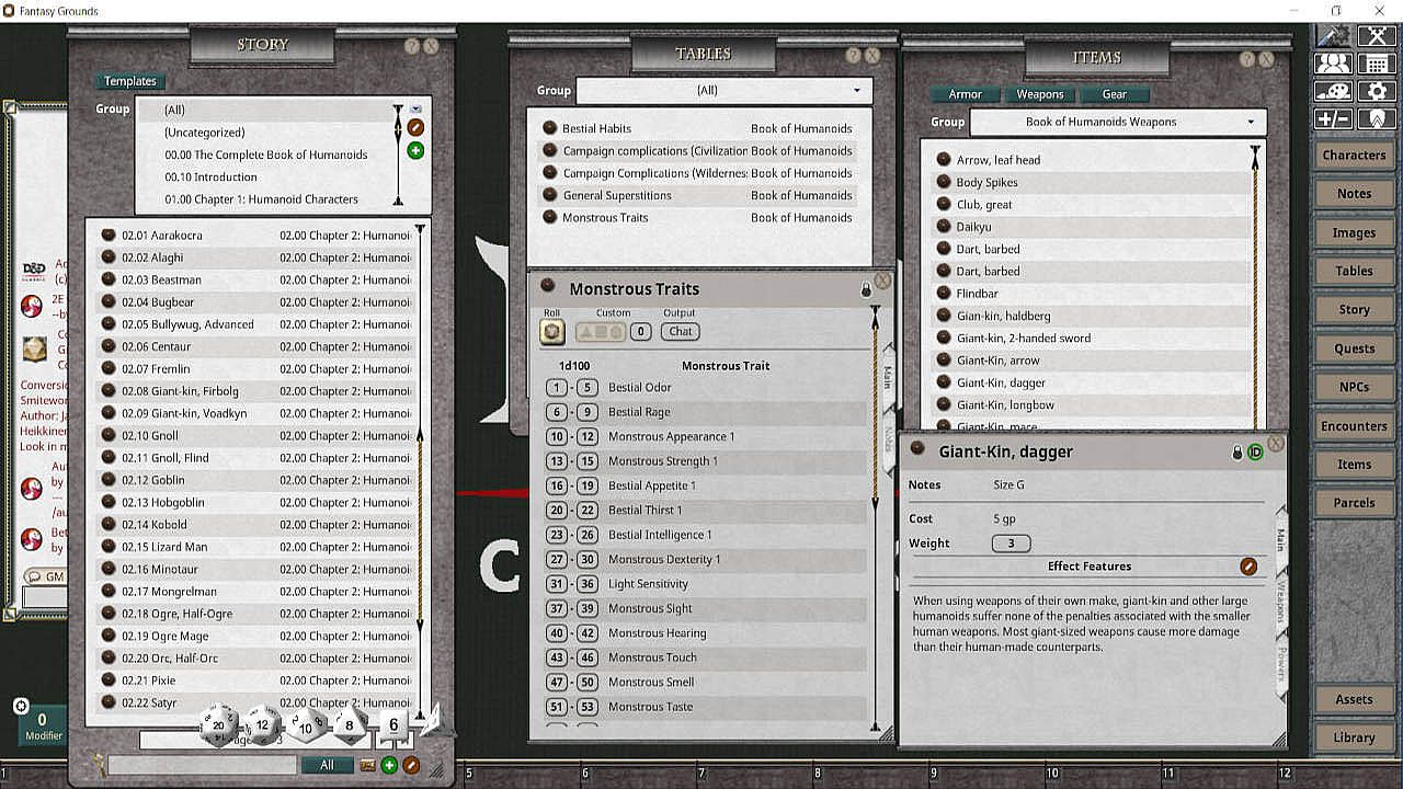 Requires: An active subscription or a one time purchase of a Fantasy Grounds Full or Ultimate license and any ruleset. Compatible with Fantasy Grounds Unity or Fantasy Grounds Classic