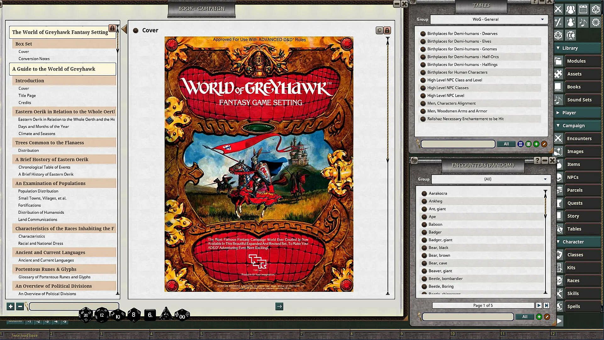 More than a collection of maps and names, it is an active world filled with decaying empires and dark forests. Game elements include the gods of Greyhawk, the clash of political factions, and encounters in this wild land.