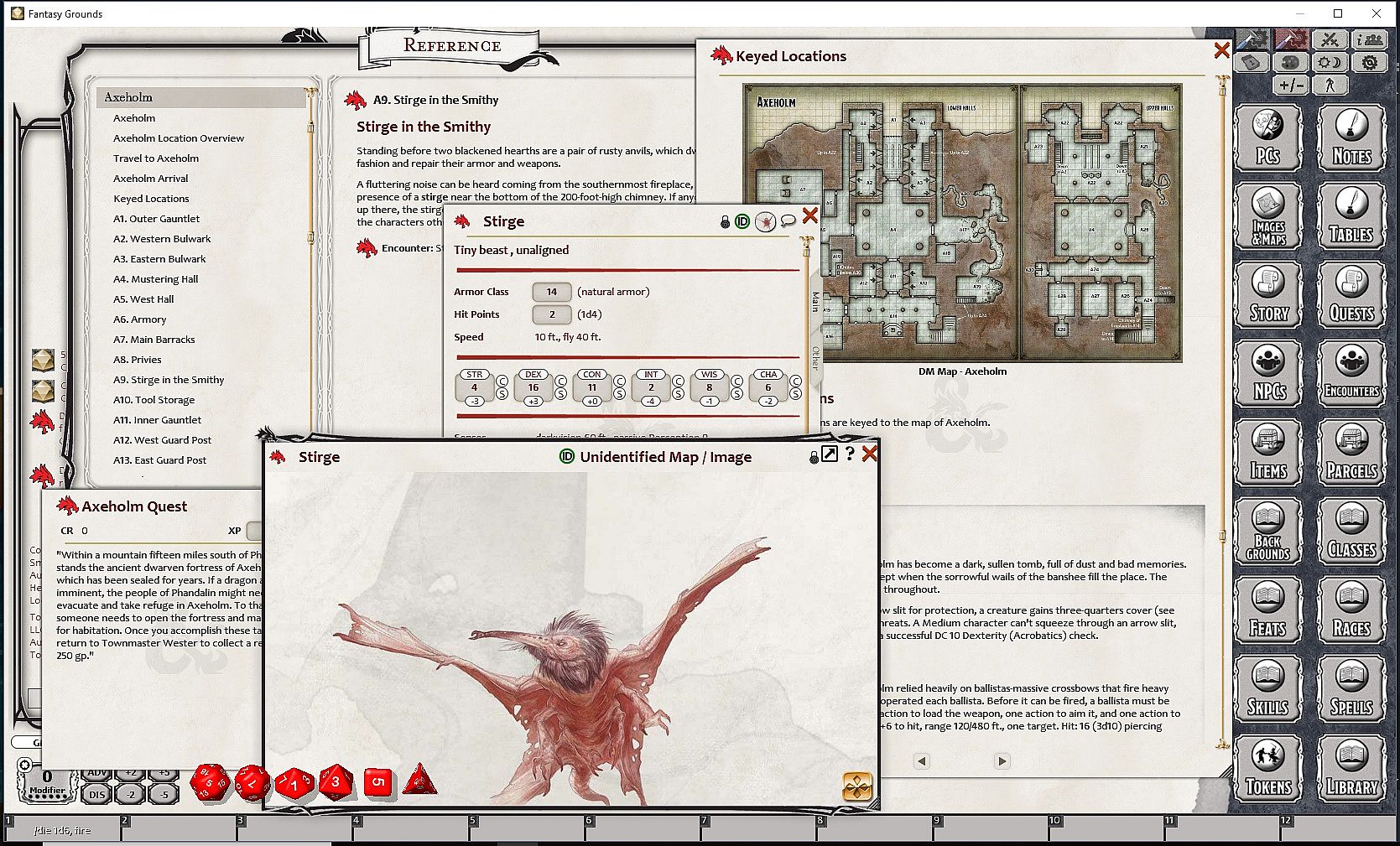 Requires: An active subscription or a one time purchase of a Fantasy Grounds Full or Ultimate license and the included D&D fifth edition ruleset.