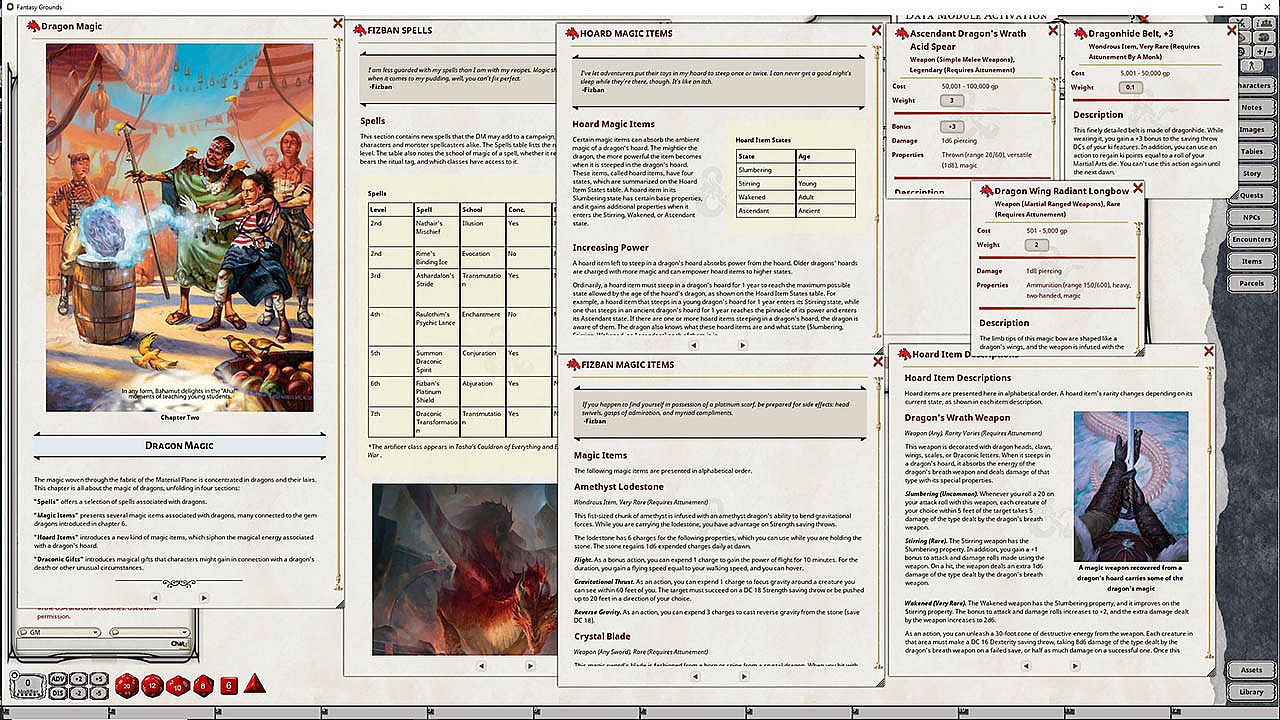 - Adds new player character options, including unique draconic ancestries for dragonborn, dragon-themed subclasses for monks and rangers, and new feat and spell options.