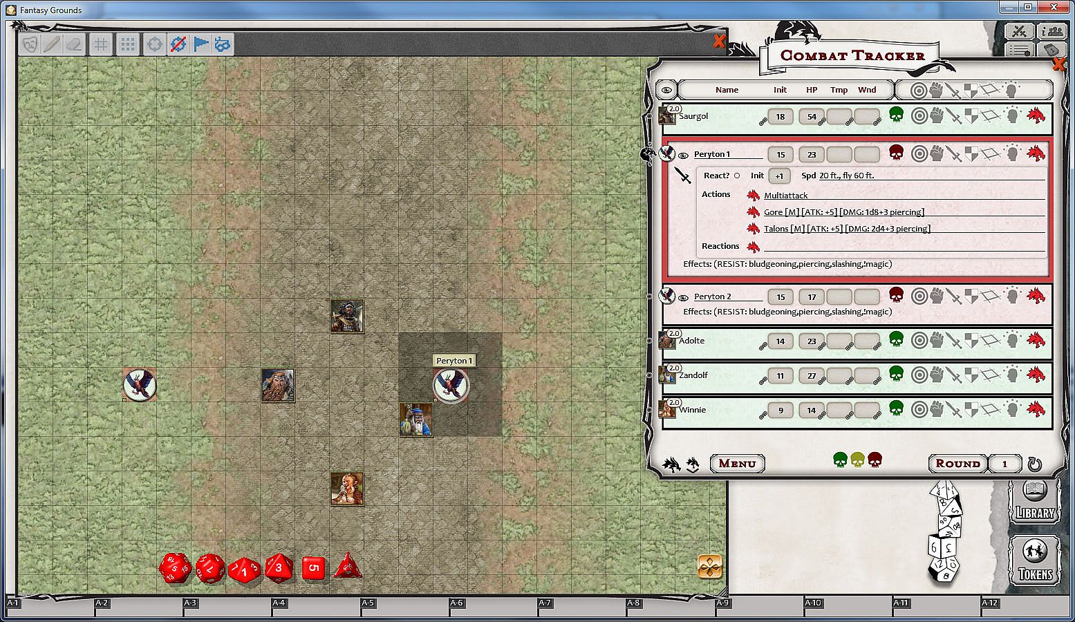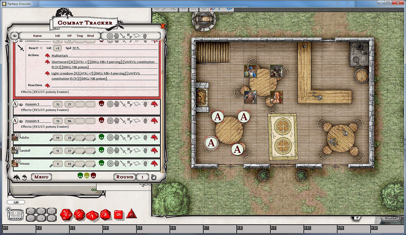 • tokens for many of the monsters in the module. When no token is available, a letter token is used to represent the NPC