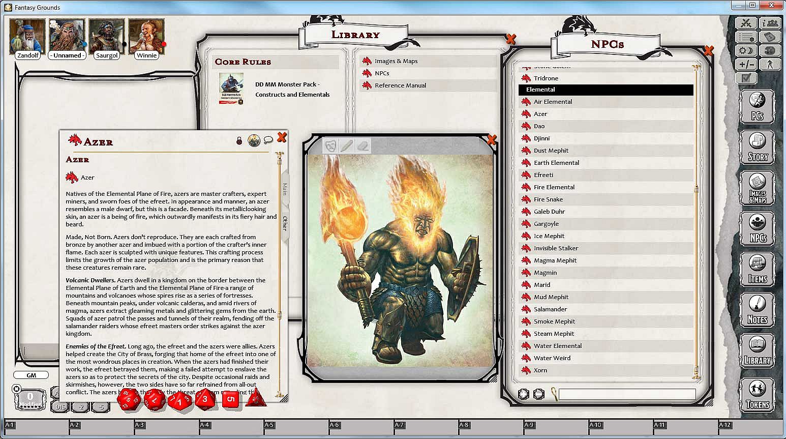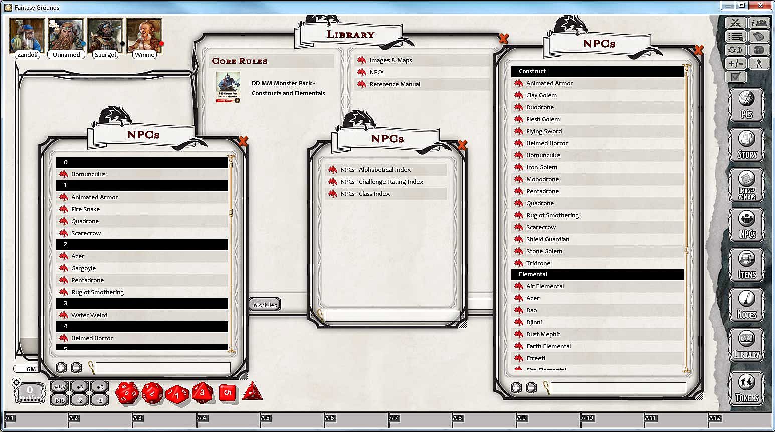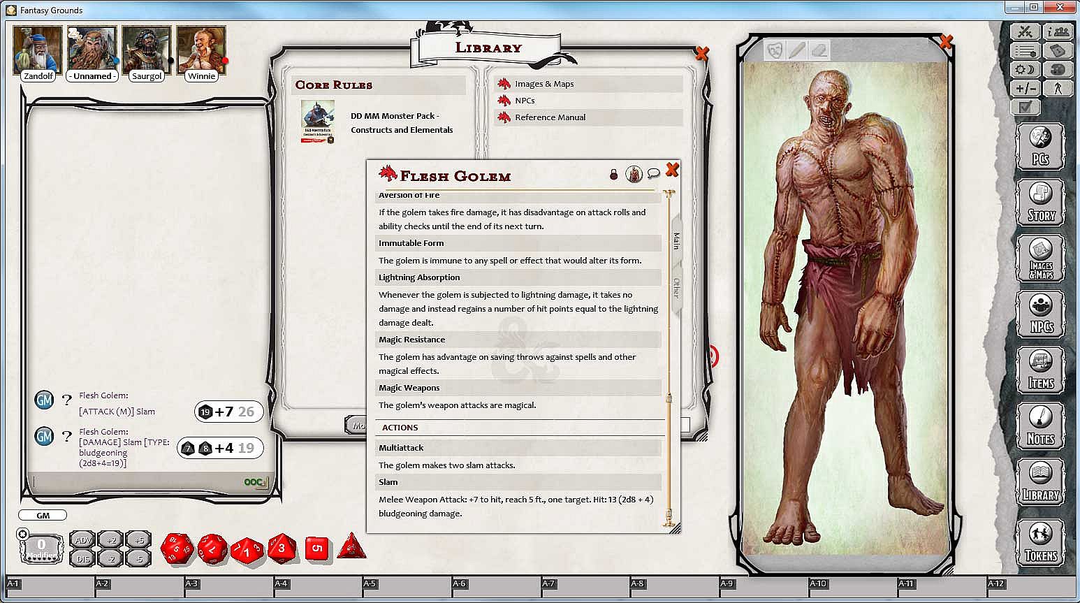 - Full stats for all construct & elemental monsters in the D&D Monster Manual, created as NPC records within Fantasy Grounds for use in building encounters and to help automate attacks and abilities in combat