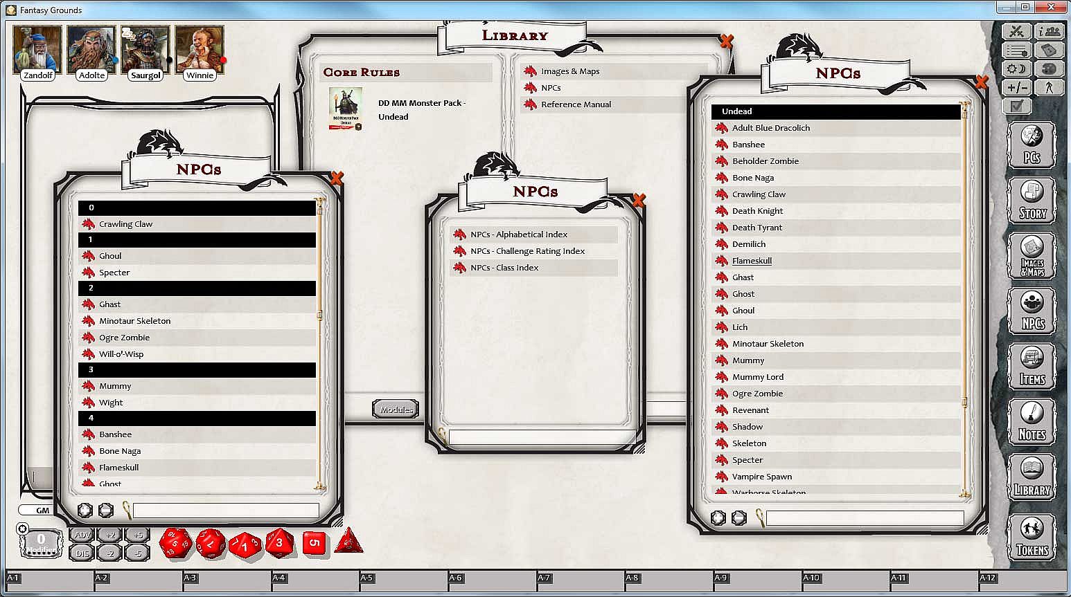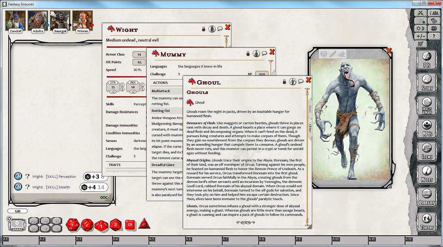 - Full stats for all undead monsters in the D&D Monster Manual, created as NPC records within Fantasy Grounds for use in building encounters and to help automate attacks and abilities in combat