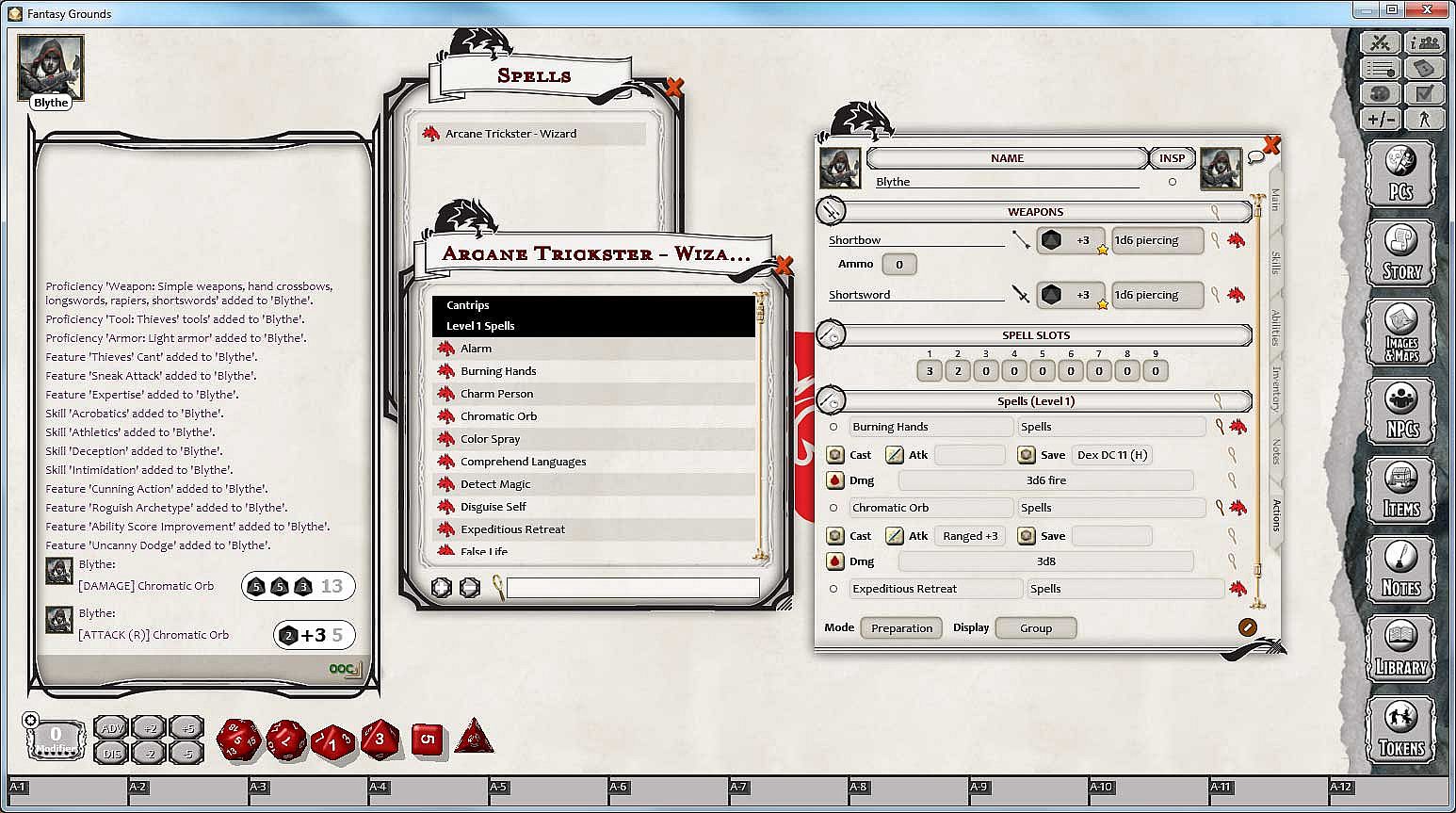 • Access to the wizard spell list for use by arcane tricksters--drag them to your character sheet for access during play