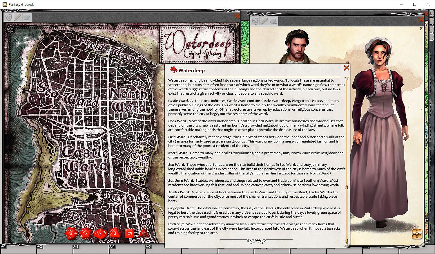 Dungeon Masters purchasing this module can use it to help expand the detail presented to players for other purchased adventures within the Forgotten Realms or to help craft unique experiences. Maps and descriptive text are provided for numerous locations in the world of Faerûn -- often with hotkeys that take you to more details.