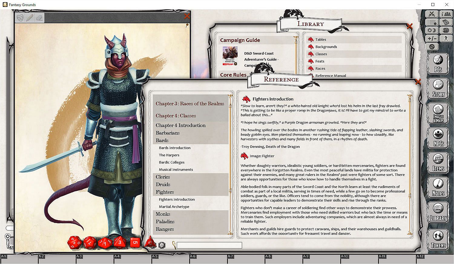 Requirements: A license for Fantasy Grounds (Standard or Ultimate) or an active license subscription, with the built-in 5E Ruleset.