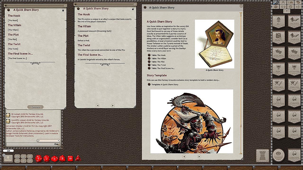 Requires: An active subscription or a one time purchase of a Fantasy Grounds Full or Ultimate license and the included D&D fifth edition ruleset.