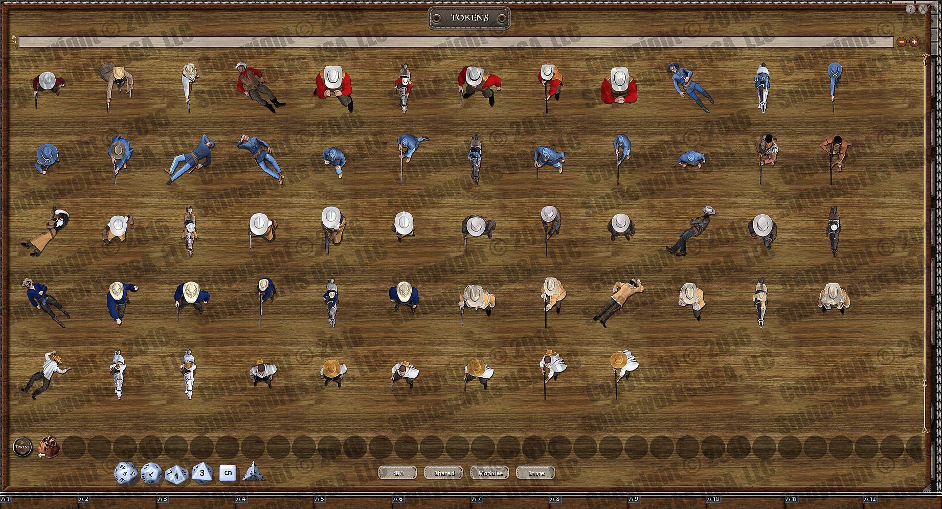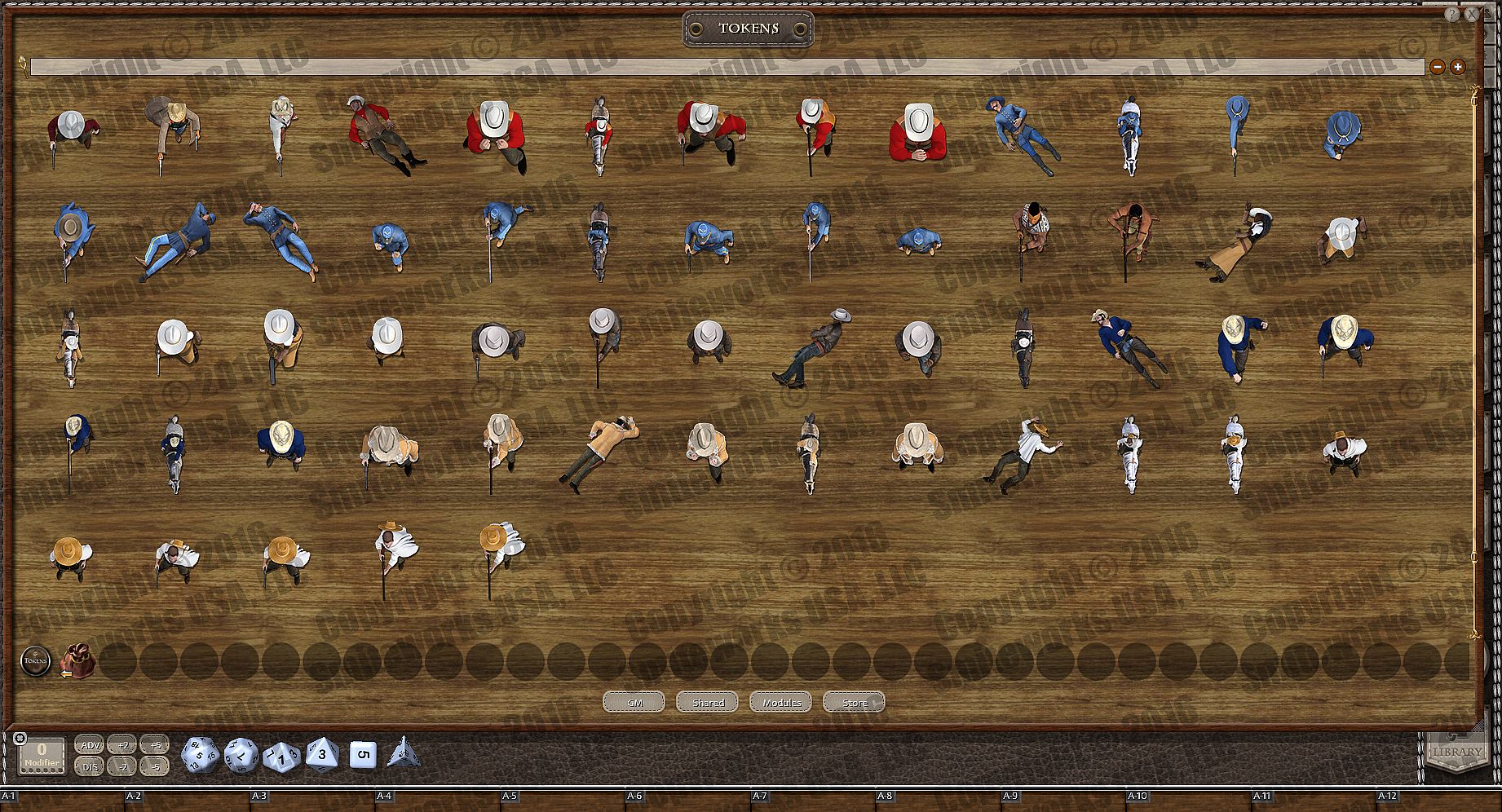 Created by Riley D. Owens (aka Darkwoulfe), this product consists of 57 top-down uniquely designed, 3d rendered tokens, depicting heroes, villains and monsters. You can use these to replace the letter tokens or built-in tokens in many popular adventure modules. Just unlock the encounters and drag these over top or drag them over top of the listing in your combat tracker.