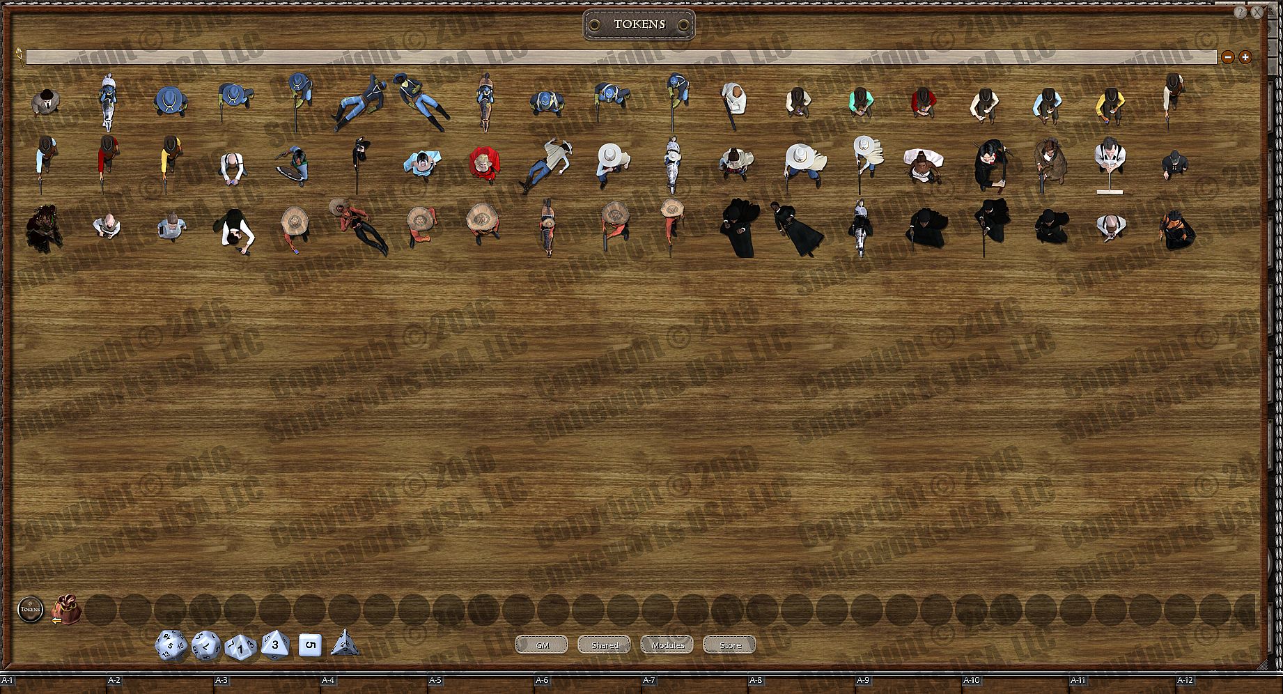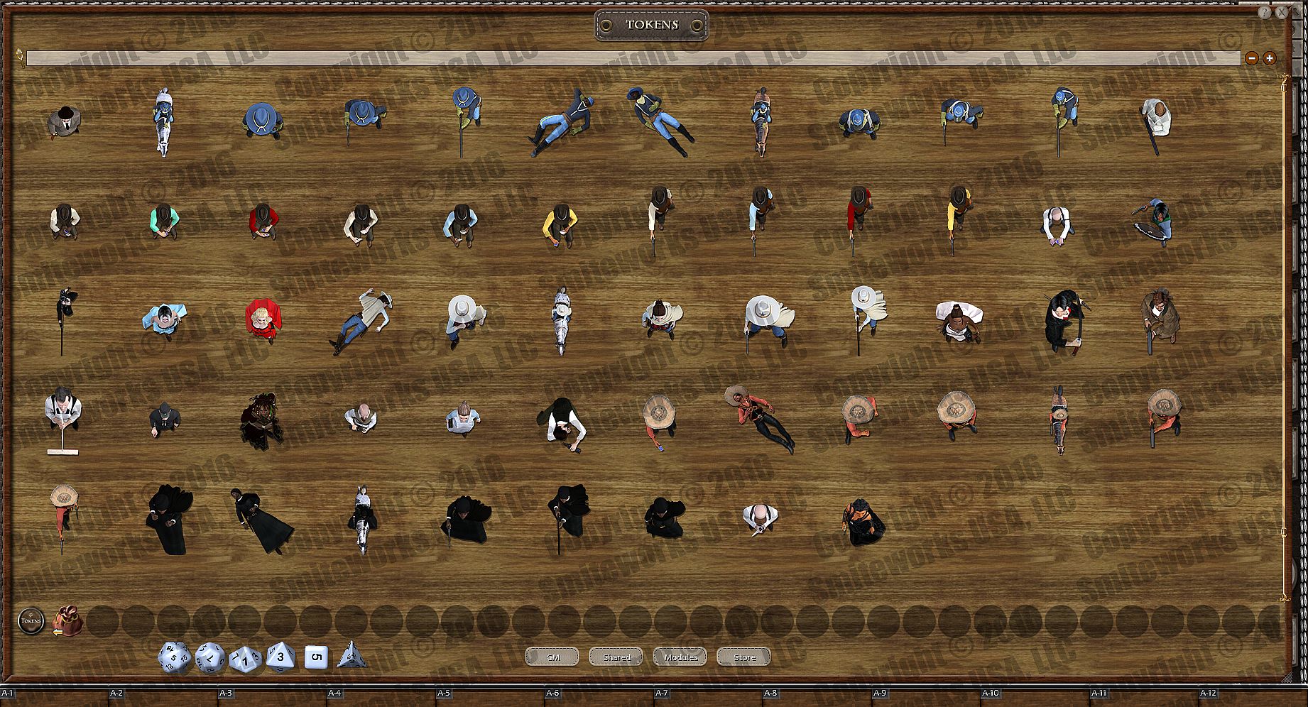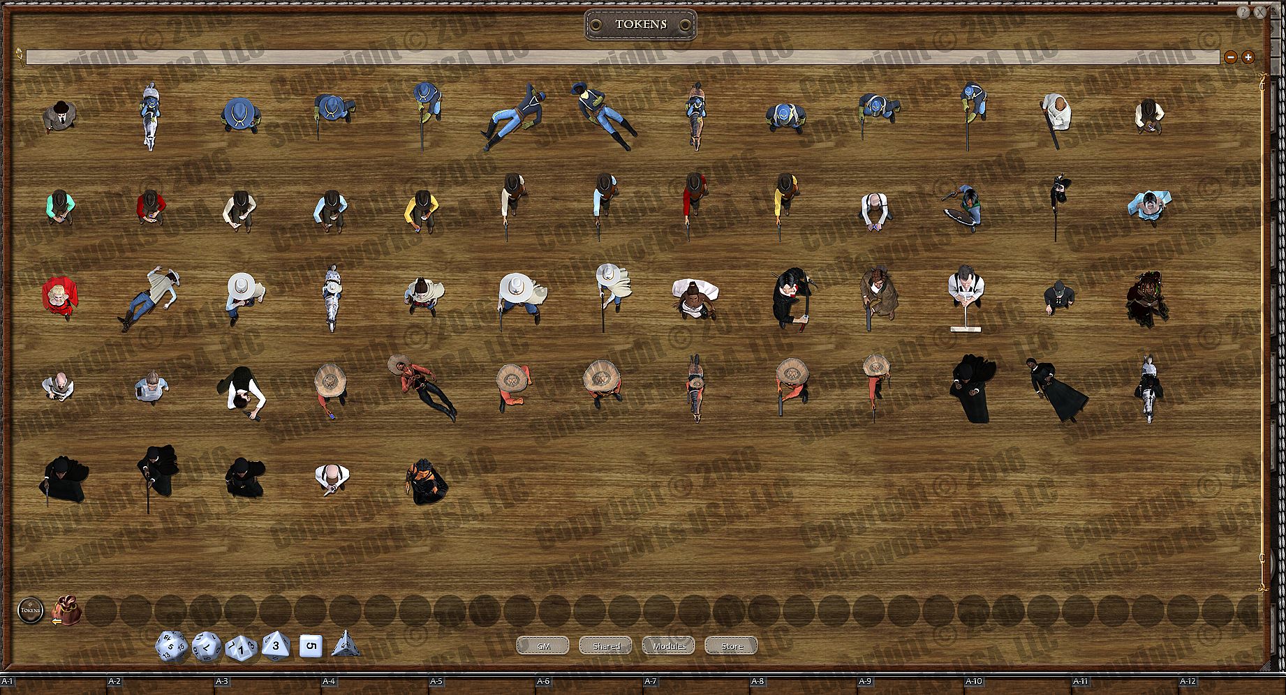 Created by Riley D. Owens (aka Darkwoulfe), this product consists of 57 top-down uniquely designed, 3d rendered tokens, depicting heroes, villains and monsters. You can use these to replace the letter tokens or built-in tokens in many popular adventure modules. Just unlock the encounters and drag these over top or drag them over top of the listing in your combat tracker.