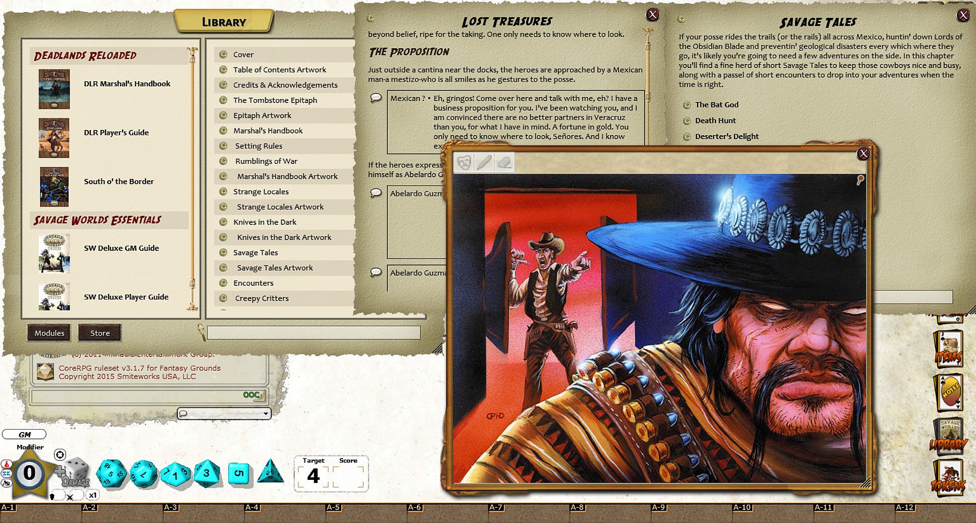 Requires: A Fantasy Grounds subscription, full, or ultimate license and the Savage Worlds v3 Ruleset and the Deadlands Setting for Fantasy Grounds.
