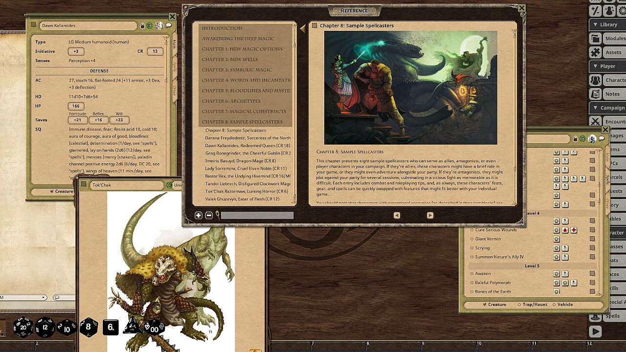 - 733 arcane and divine spells, including elemental-tinged dragon magic, ley line magic, and spells for mythic heroes