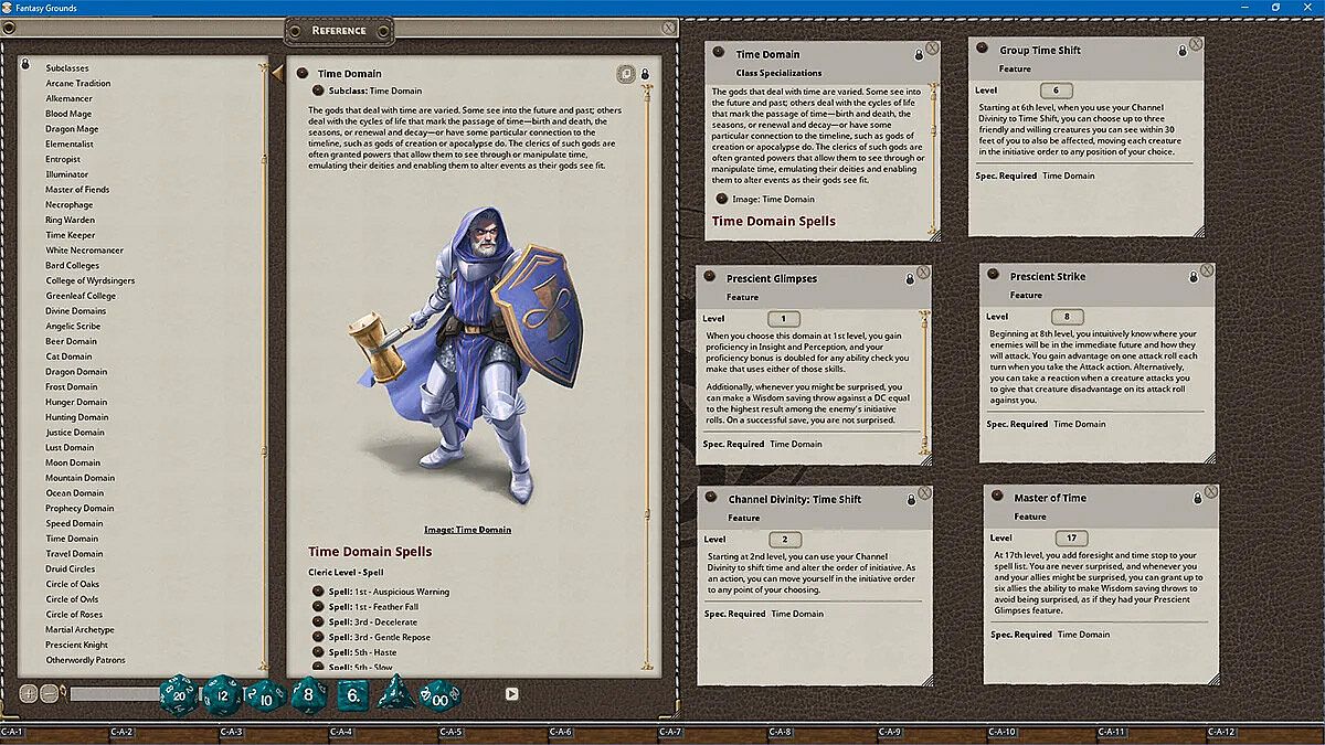 - 16 divine domains, such as Beer, Frost, Justice, Moon, and Time