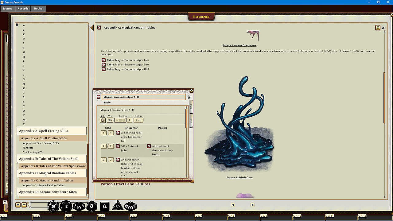 - Over a dozen tables, from descriptions of magical effects to reverse summoning quests, to the odd effects from drinking an old or badly brewed potion!