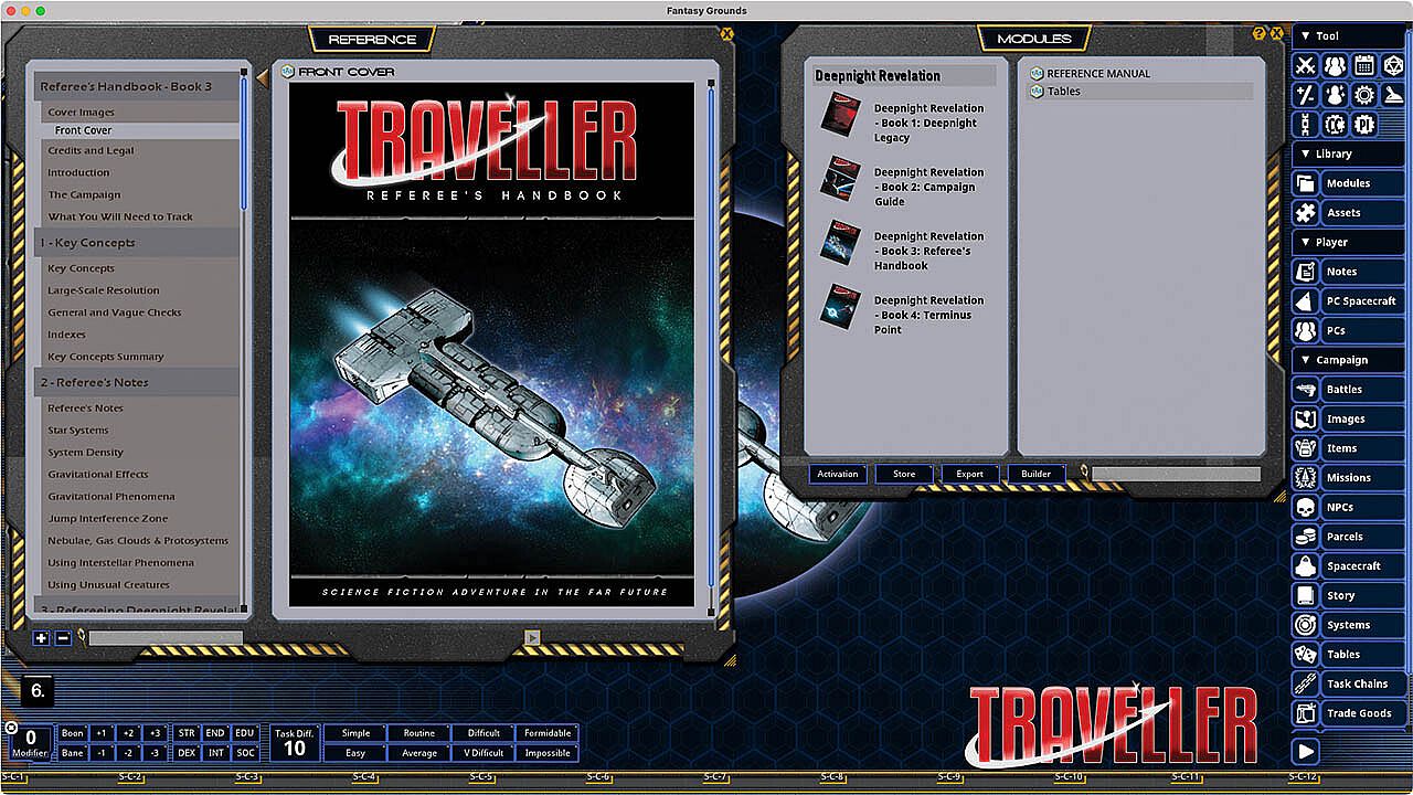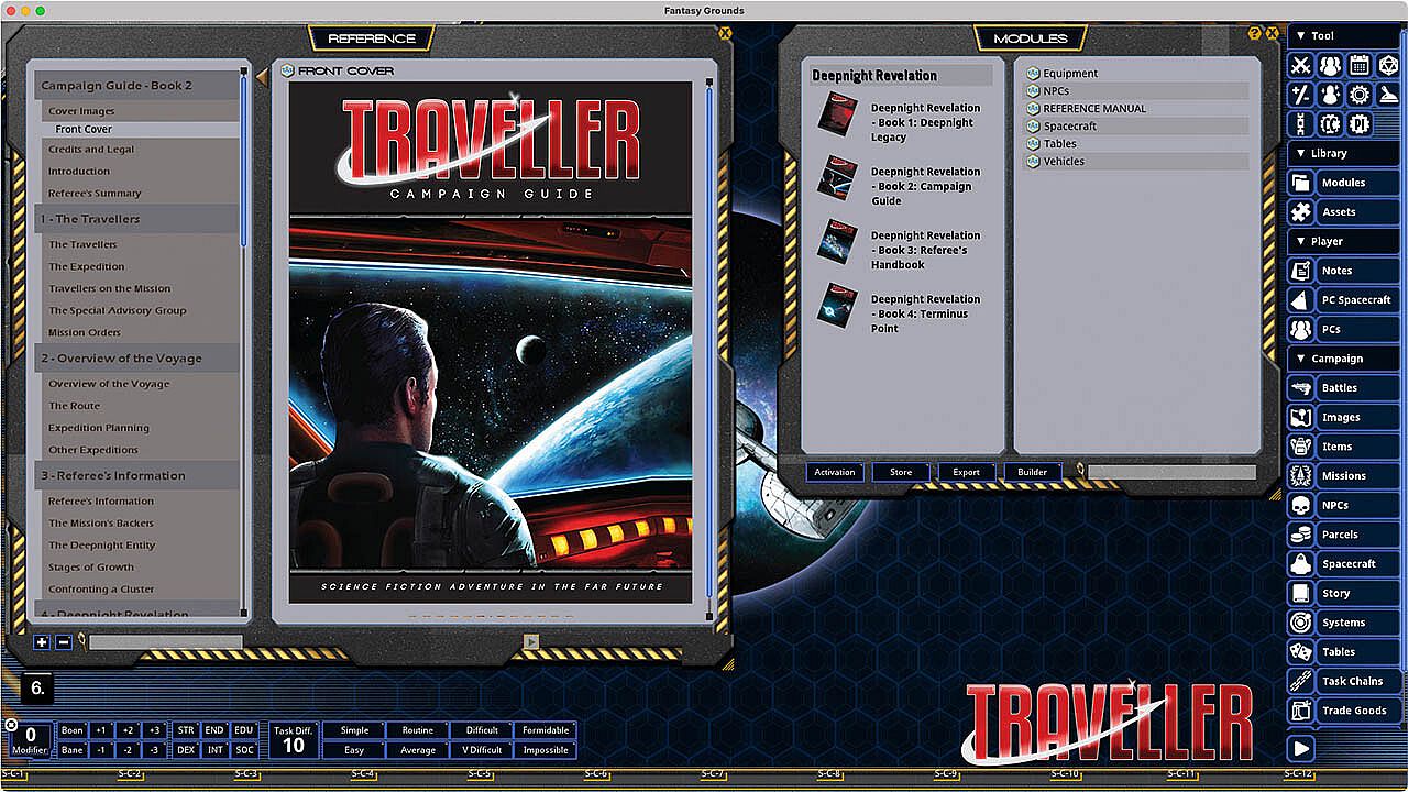 Book 1: Deepnight Legacy, the introductory adventure that sets the scene.Book 2: Campaign Guide, outlining the entire voyage and regions of space travelled.Book 3: Referee's Handbook, containing all the rules you need to know to run this epic campaign.Book 4: Terminus Point, the incredible grand finale that will take your Travellers where no Traveller has gone before...