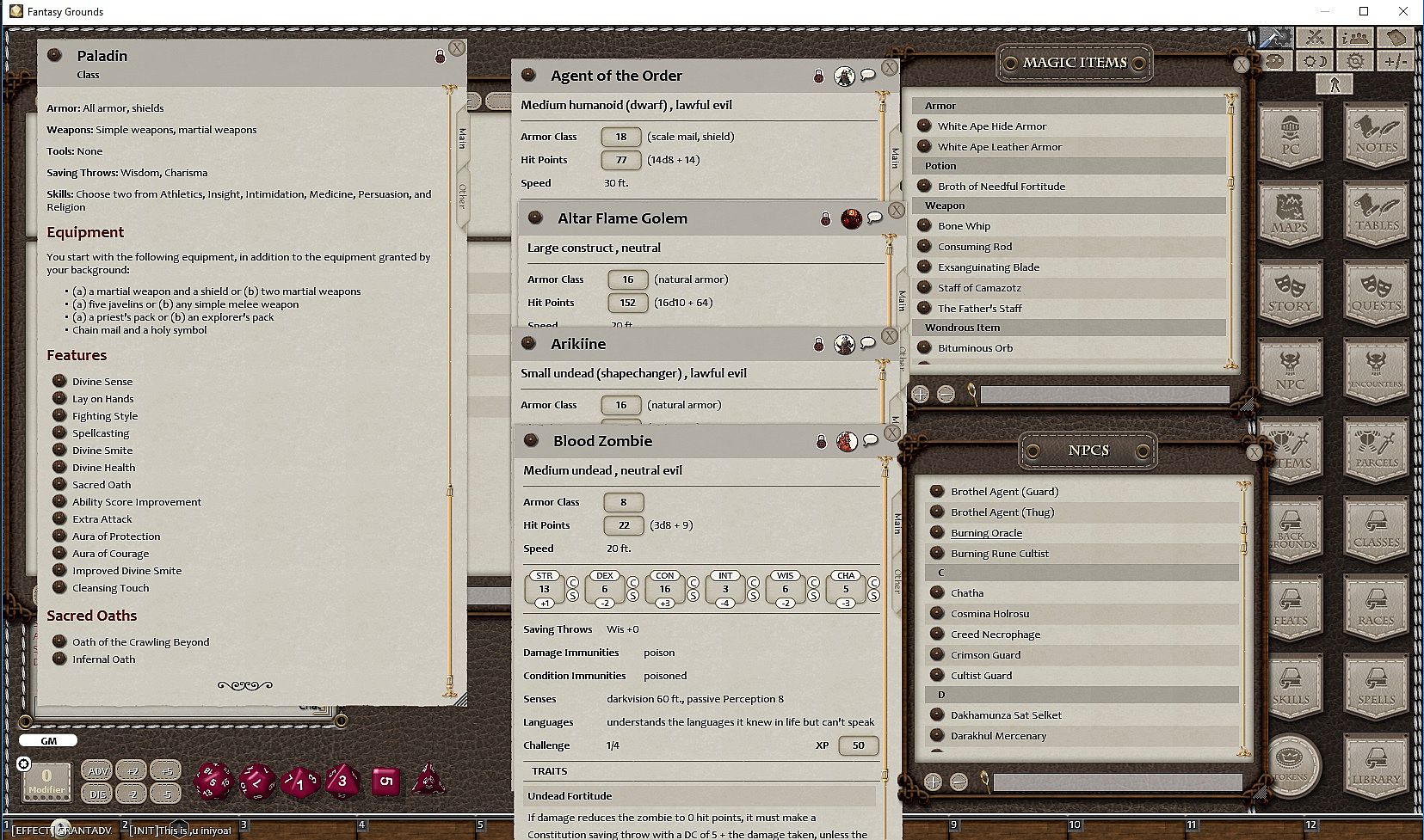 Requires: An active subscription or a one time purchase of a Fantasy Grounds Full or Ultimate license and the included 5E ruleset.