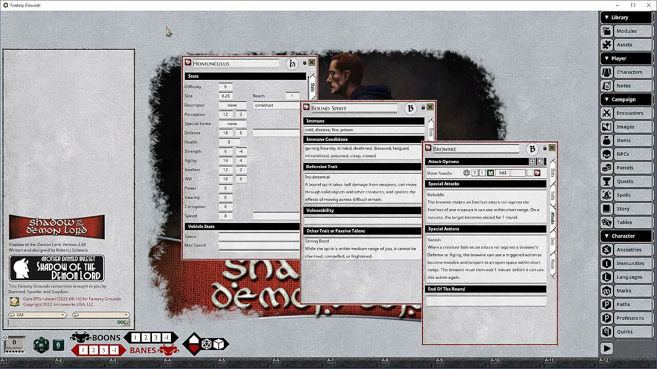 This Fantasy Grounds conversion includes separate GM and Player modules. "