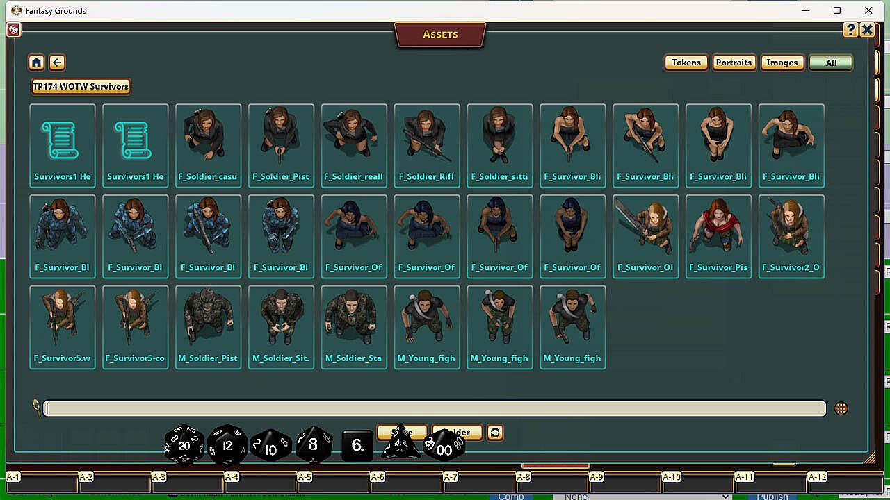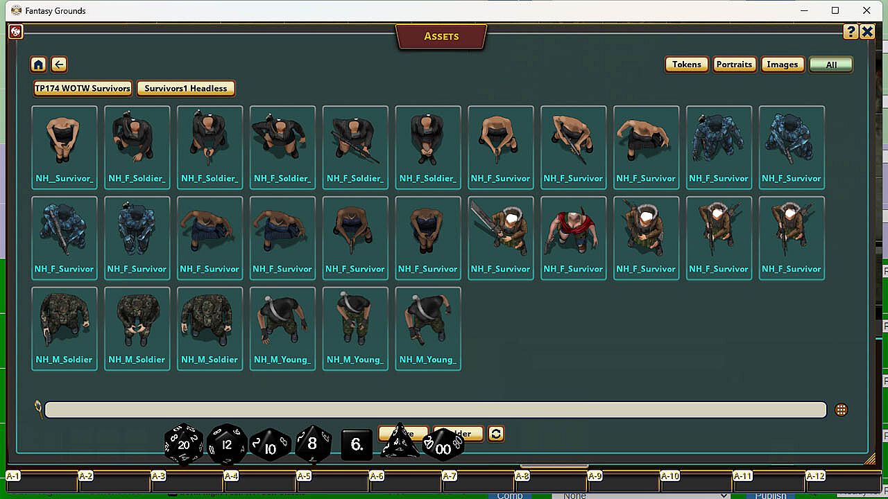 The irradiated wastes have divulged another set of savvy and stalwart survivors! These 28 men & women feature multiple poses with various firearms, in addition to an extra 28 headless bodies and 28 heads; allowing a crafty overseer to customize their wasteland wanders to perfectly meet their adventuring aspirations! This pack contains headless images and separate head images that can be used to create your own tokens.1. Find the module within the Assets window.