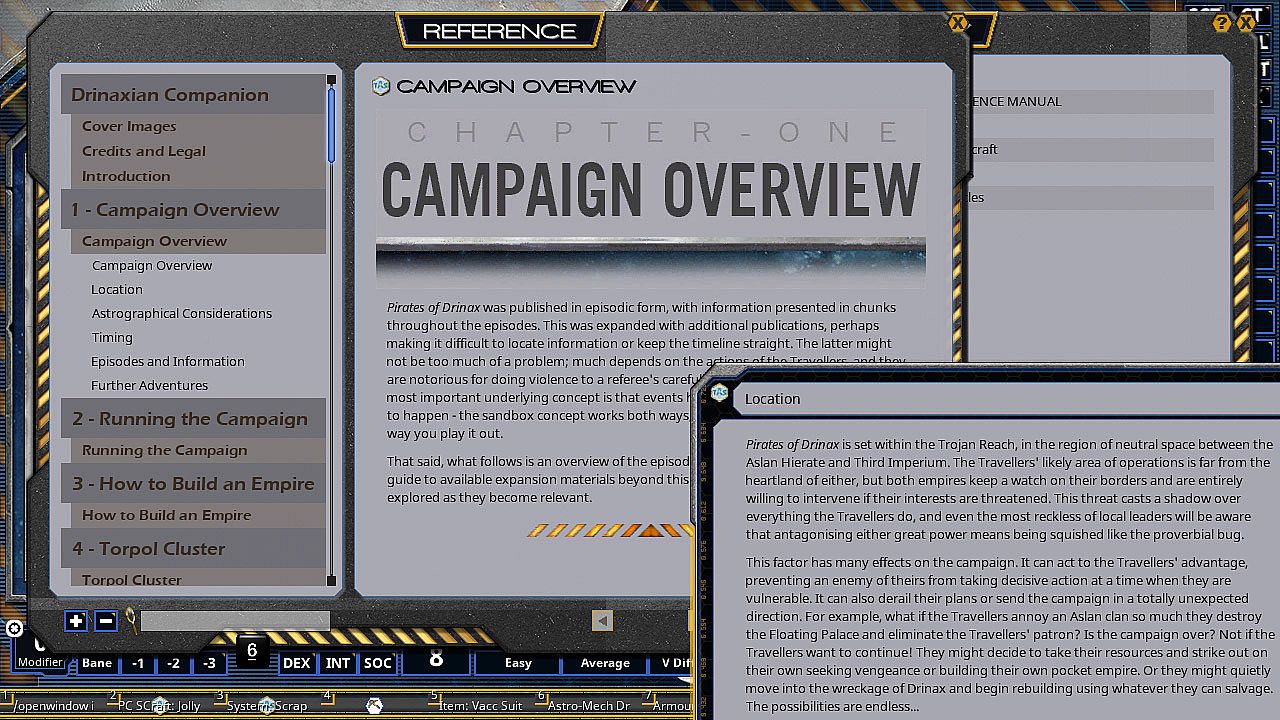 - A complete Assets and Factions system, allowing the Travellers to build a network of havens and supporting organisations across the sector.