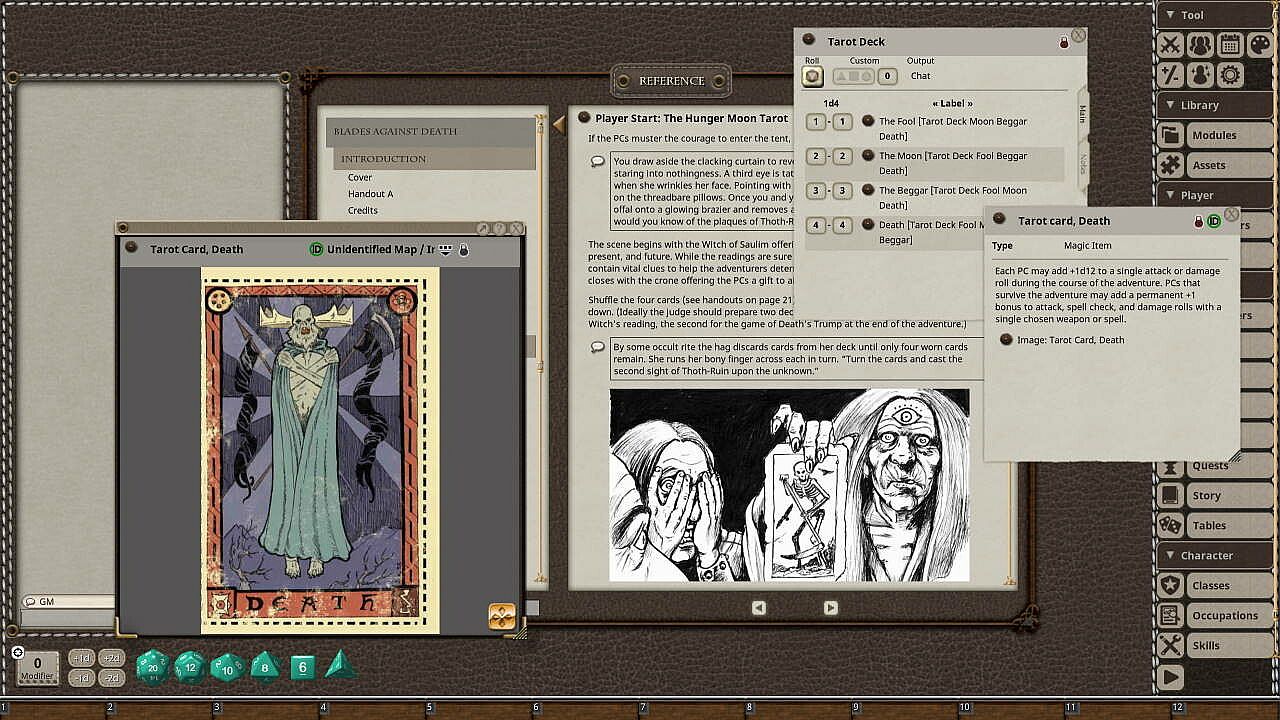 BONUS ADVENTURE! Abbott of the Woods by Harley Stroh, as well as the four Tarot Card handouts now printed in full color. "