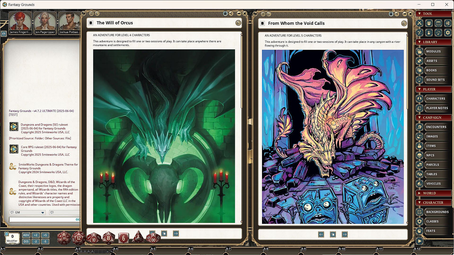 • Fully integrated adventures ready to run with dynamic line of sight, lighting, interactive maps, and support for both top-down 2D maps and 2.5D token view.