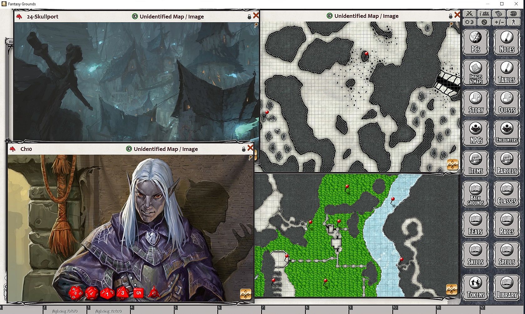 Requires: An active subscription or a one time purchase of a Fantasy Grounds Full or Ultimate license and the included 5E ruleset.