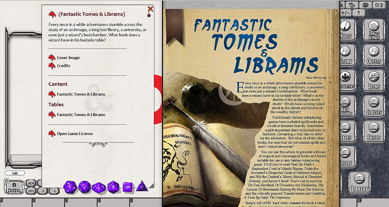 Requires: An active subscription or a one time purchase of a Fantasy Grounds Full or Ultimate license and the included 5E Compatible ruleset.