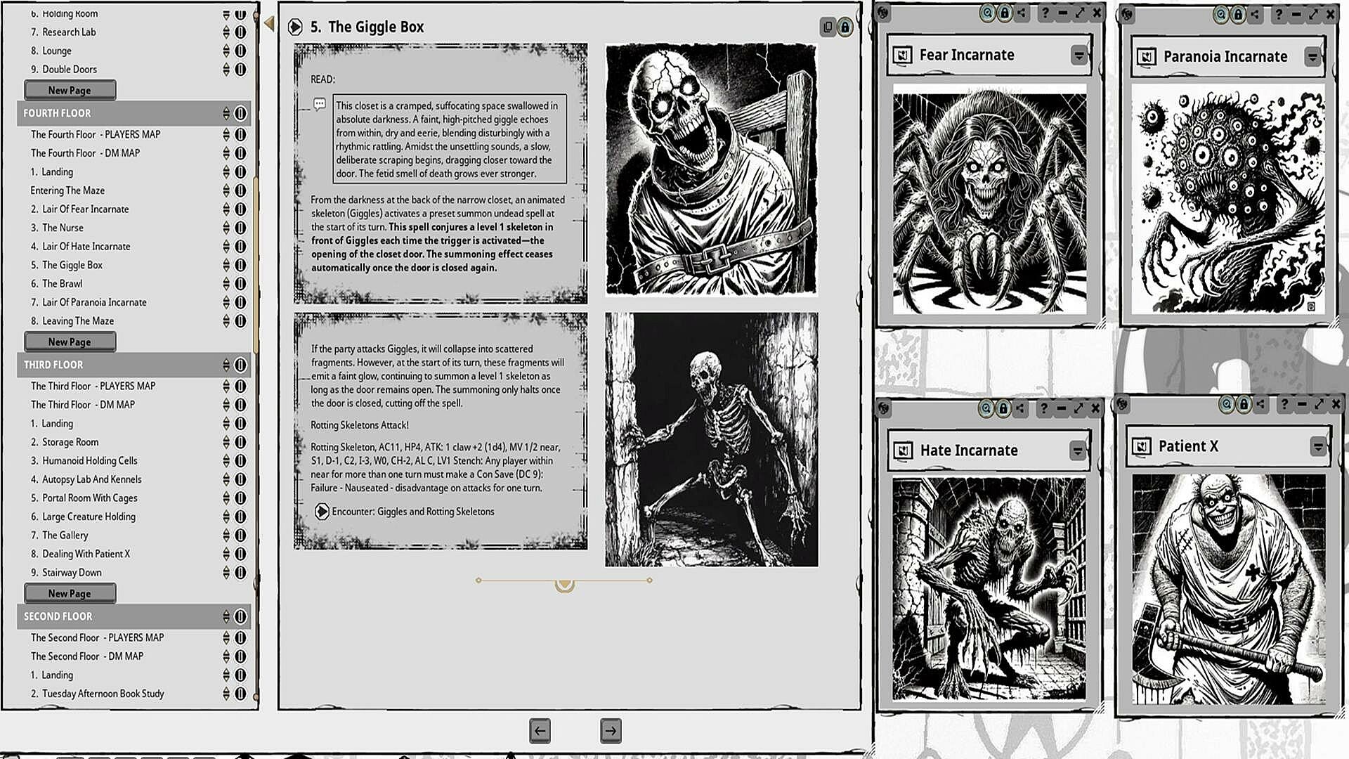 is a gothic horror-themed adventure that challenges players to escape floor by floor. Each level presents a unique condition or objective that must be met before the characters can advance. The adventure is filled with nods to classic horror tropes, offering players a sense of familiarity amidst the terror. Inspired in part by H.G. Wells' The Island of Doctor Moreau, the narrative also introduces numerous NPCs who inject moments of humor, balancing the darker aspects of the horror experience.