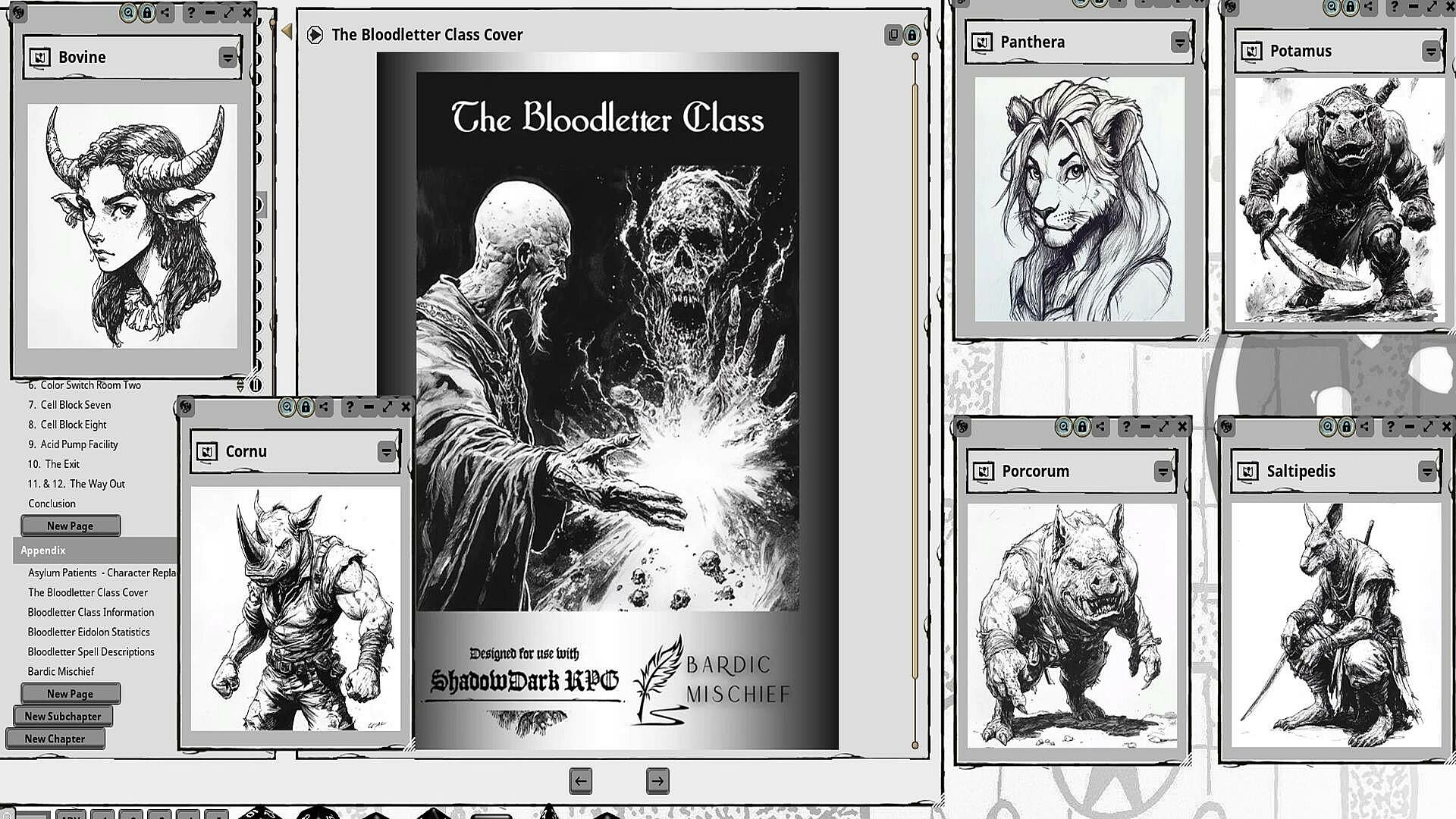 This adventure features 14 beautiful maps, 24 new spells, 26 pre-generated level 0 playable characters, 26 new monsters and adversaries, and a new Necromancer Character Class "The Bloodletter".