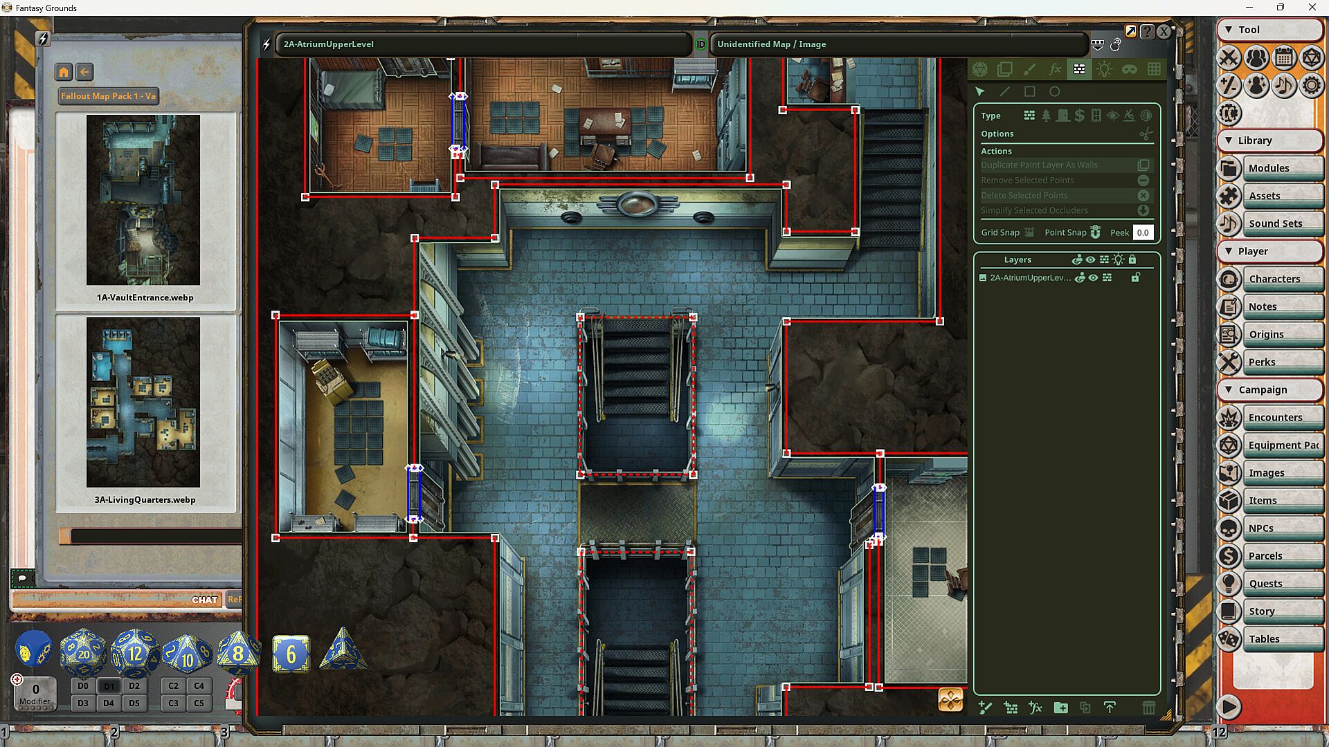 - 8 highly detailed, battlemaps set up for Fantasy Grounds Unity with dynamic line of sight, interactive doors, and lighting
