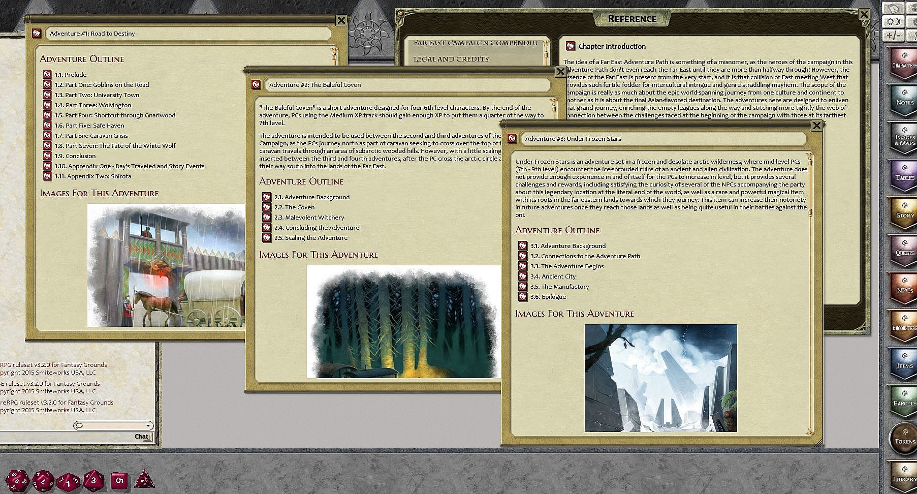 This compilation includes the entire line of Far East Adventure Path titles: Imperial Heroes, Road to Destiny, Under Frozen Stars, The Baleful Coven, The Way Of Ki and