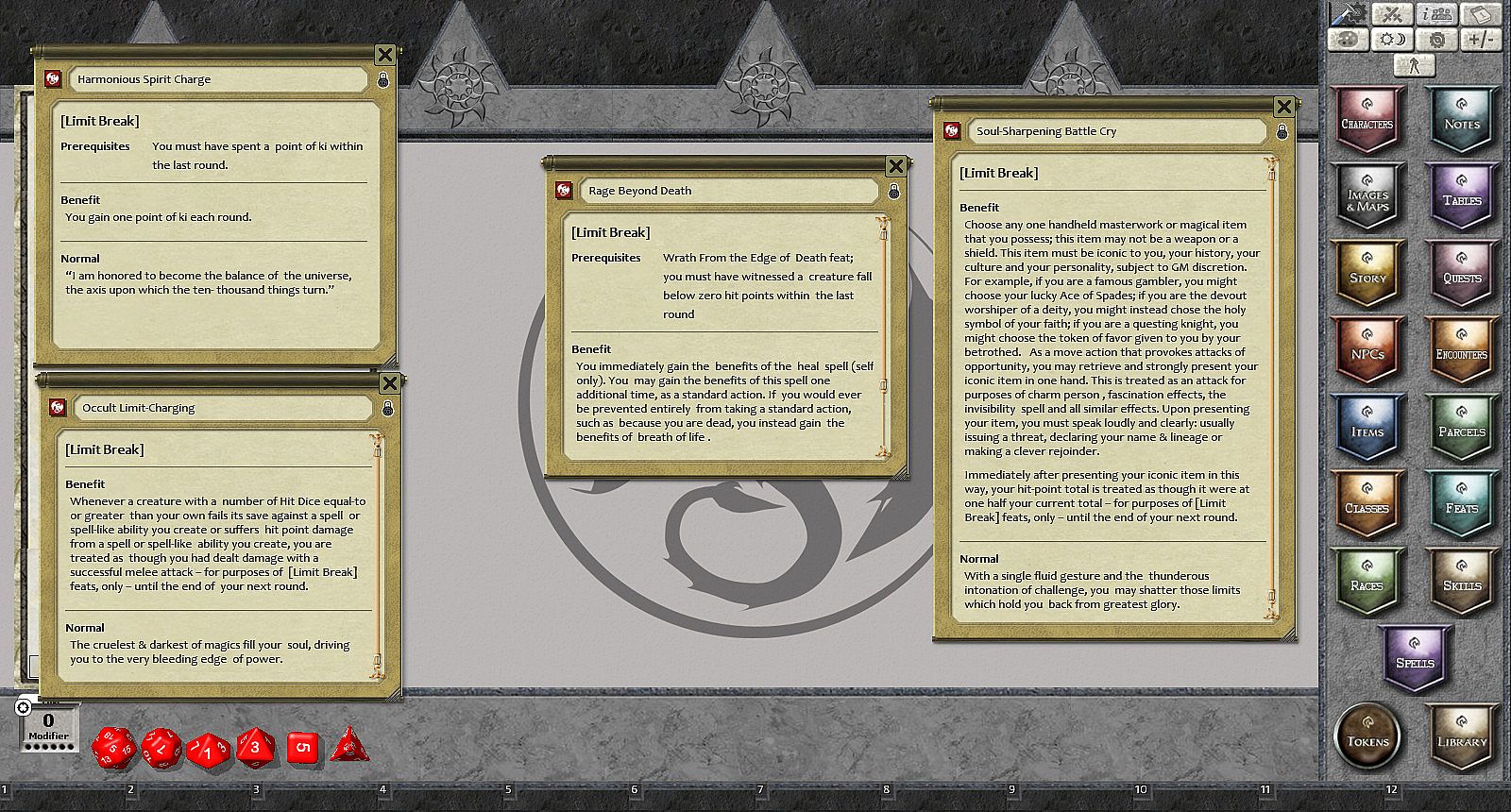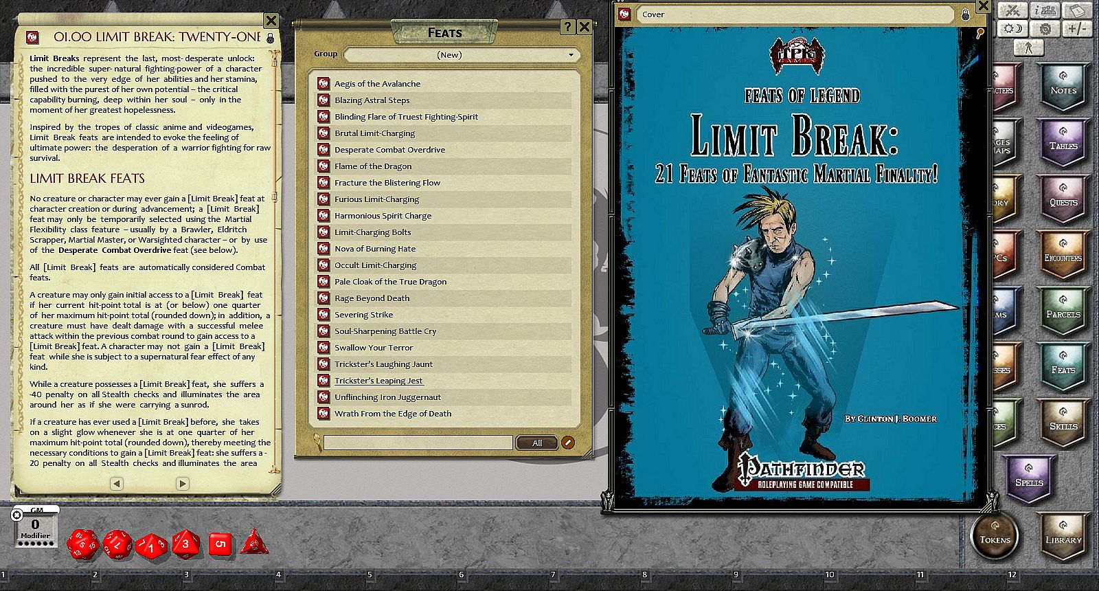 Feats of Legend returns with Limit Break: 21 Feats of Fantastic Martial Finality by Clinton Boomer. Within these pages are fantastic martial feats that will allow your martial characters to break the bonds of normal combat rules and explode into awesome, heroic actions.