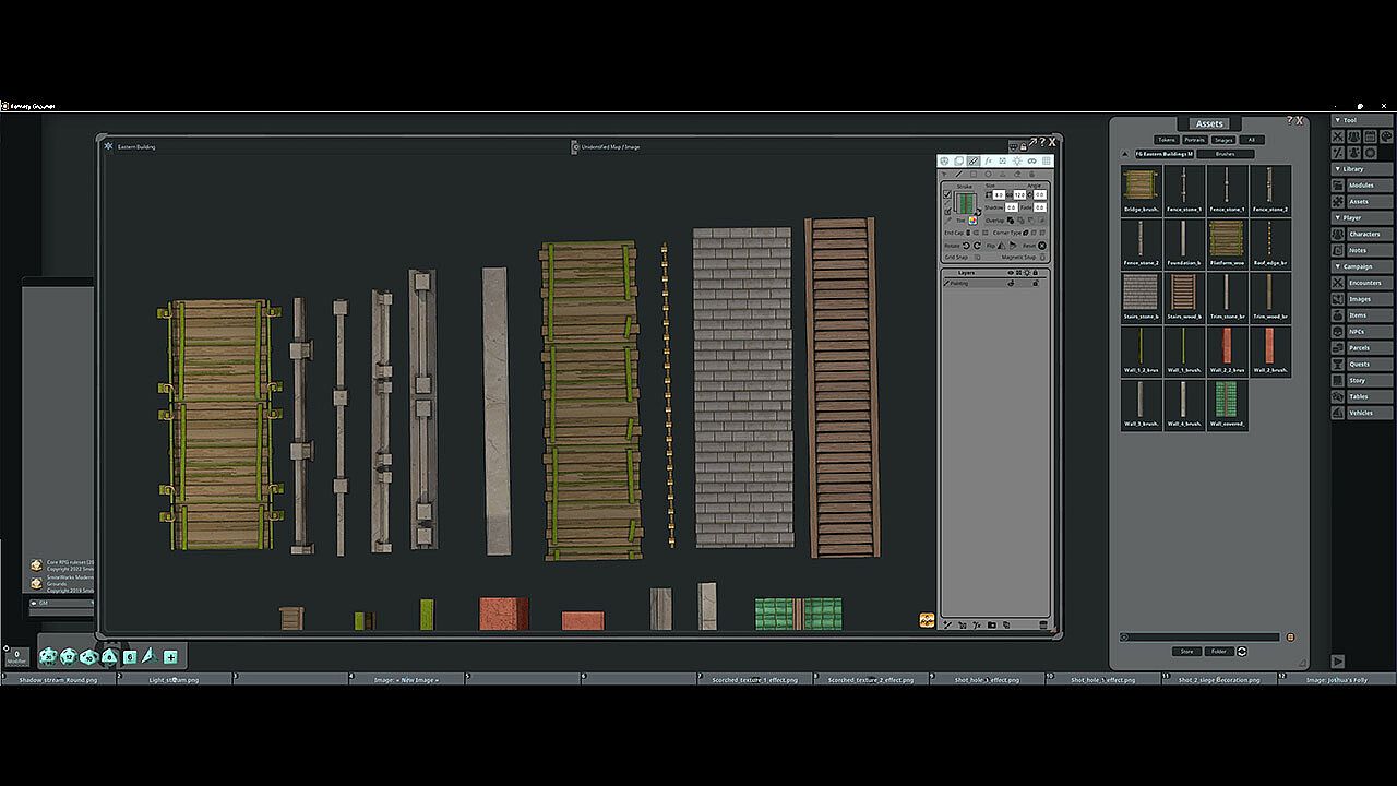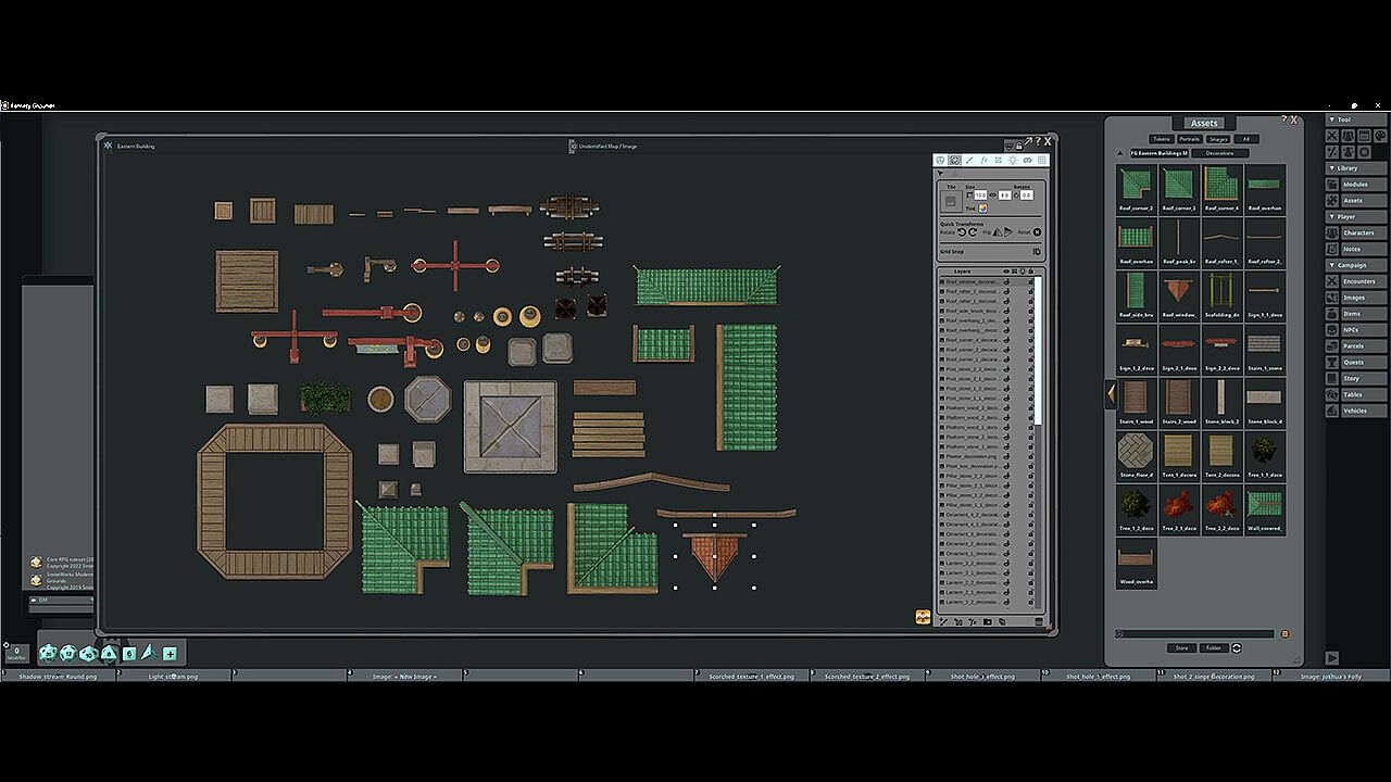 The Eastern Buildings Map Pack features images and art produced by our in-house artist, Joshua Watmough. They have been organized and optimized for use with Fantasy Grounds Unity and the image tools. This art package consists of images for the creation of classic eastern-style buildings. This pack includes the following items: