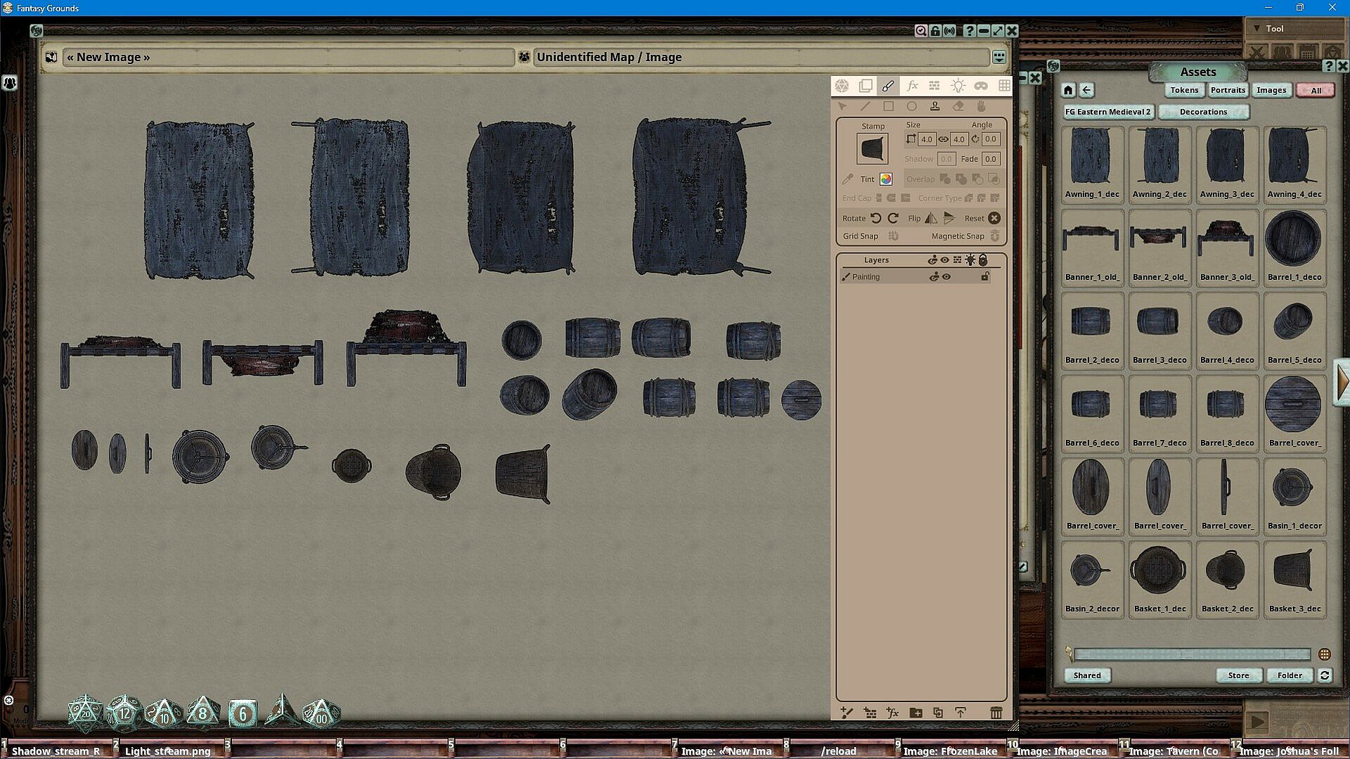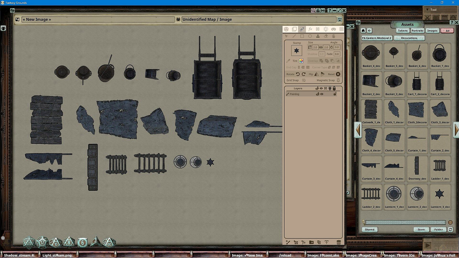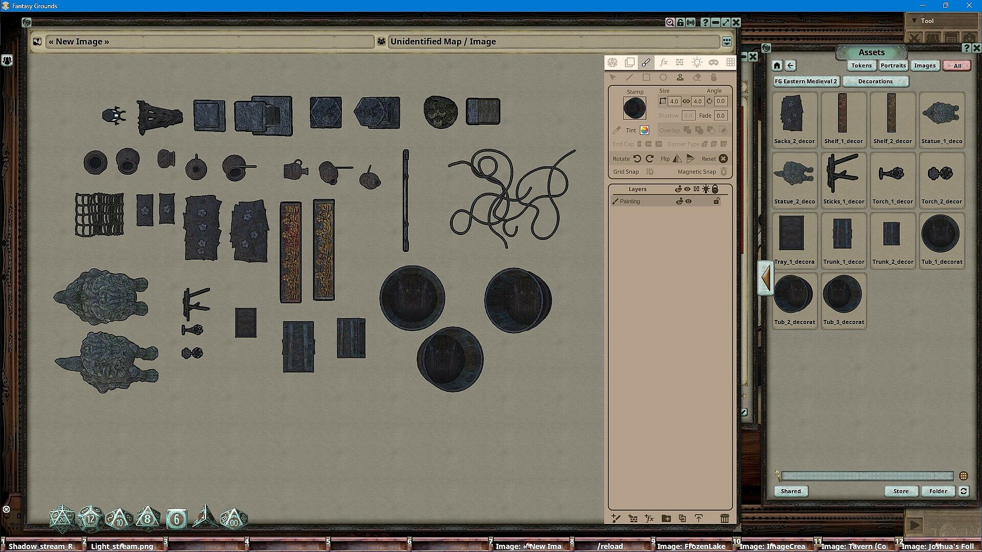 Fantasy Grounds Unity players gain access to nearly 100 optimized images from the Eastern Medieval 2 collection. These assets, crafted by in-house artist Joshua Watmough, include decorations like awnings, barrels, baskets, lanterns, pots, and statues. Use them to build new maps or refine current ones with the built-in image tools. This indie strategy RPG map resource delivers five ready-to-use maps alongside versatile decorations. RPG groups enhance their sessions by layering these elements into custom layouts. Tabletop enthusiasts running Fantasy Grounds on PC find it ideal for detailed medieval-themed visuals.