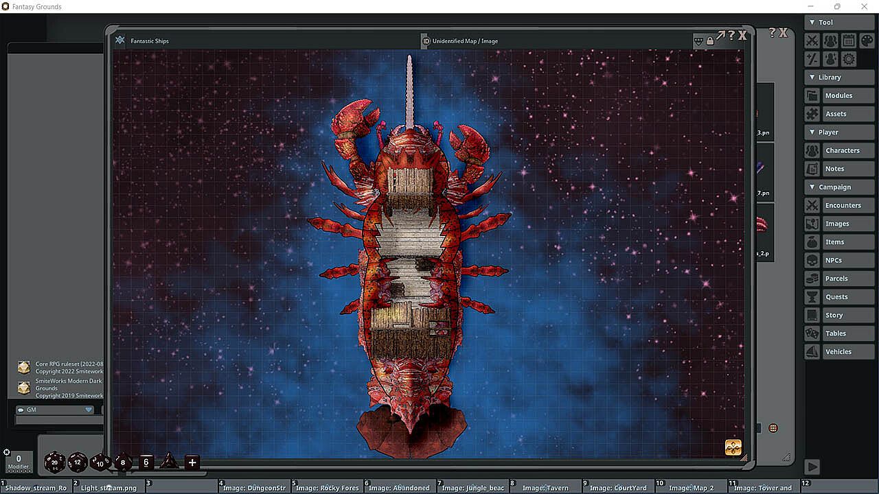 The Fantastic Ships Map Pack features images and art produced by our in-house artist, Joshua Watmough. They have been organized and optimized for use with Fantasy Grounds Unity and the image tools. This art package consists of images for creating fantasy-style ships to traverse dimensional rifts and extraplanar realms. This pack includes the following items:- Decorations include many ship decorations as well a multitude of organic elements such as wings, claws, shells, fins, tentacles, and so much more