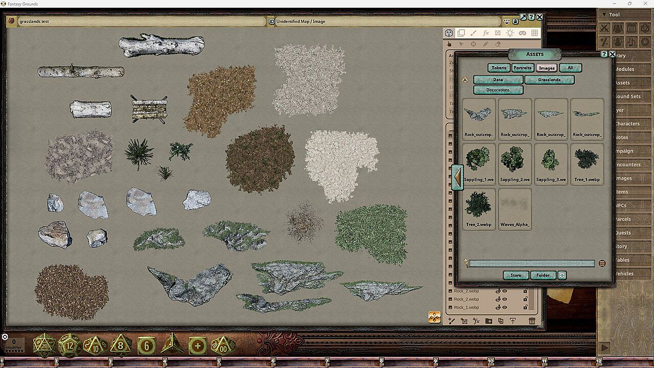 The FG Grasslands Map Pack features images and art produced by our in-house artist, Joshua Watmough. They have been organized and optimized for use with Fantasy Grounds Unity and the image tools. This map pack consists of many static images as well as some new animated elements for the construction of meadows, fields, and the like.