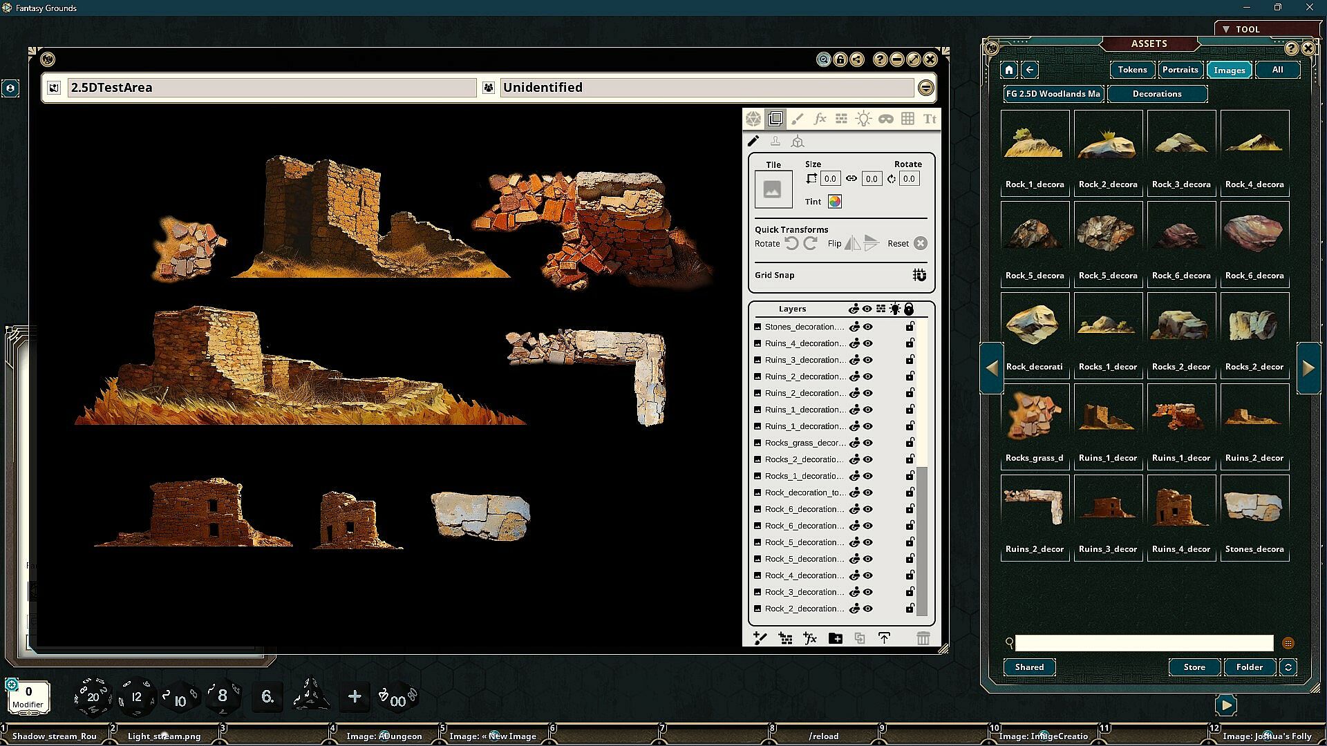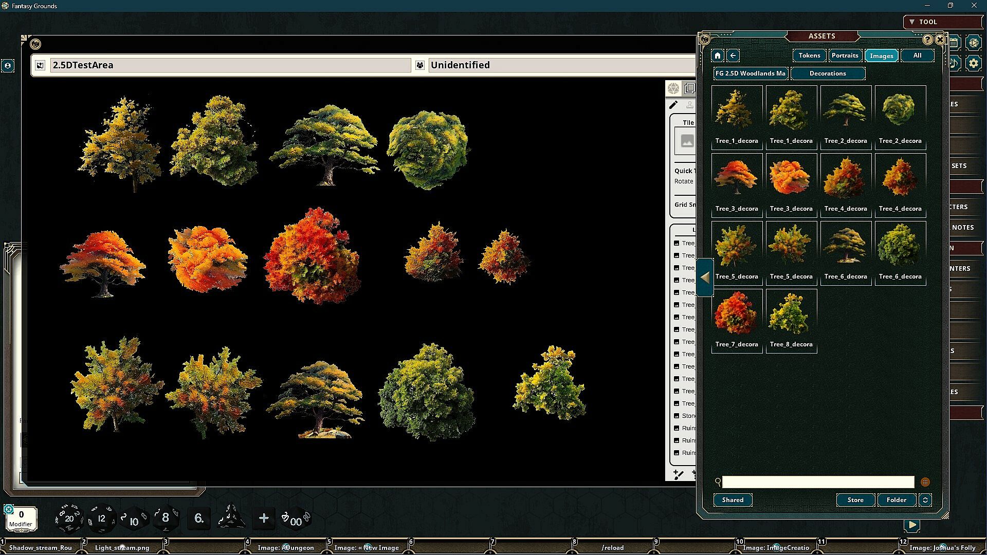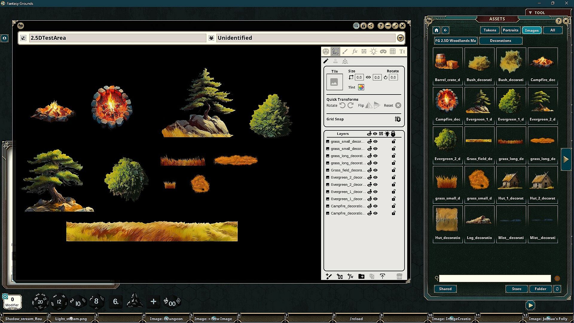 The FG Immersive Woodlands Map Pack features images and art produced by our in-house artist, Joshua Watmough. They have been organized and optimized for use with Fantasy Grounds Unity and the image tools. This art pack consists of images that can be used to create top-down and the new 2.5D  environments of classic wooded environments. You can build unique areas or add to existing maps. This pack includes the following items: