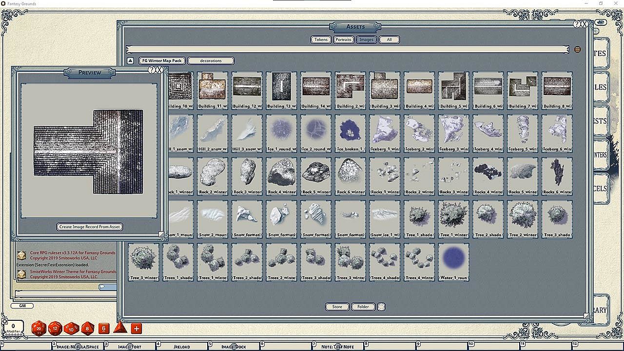 The Winter Map Pack features images and art produced by our in-house artist, Joshua Watmough. They have been organized and optimized for use with Fantasy Grounds Unity and the new image tools. This map package is specifically designed to create winter scapes as well as ice and snow-covered terrain.This pack includes: